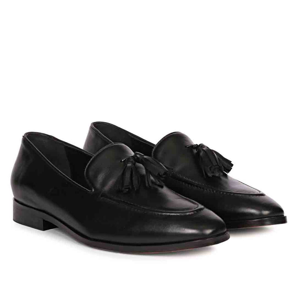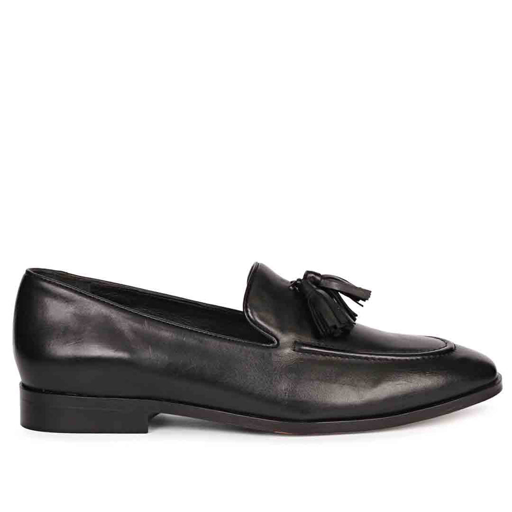 Enhance your look with this black pair of leather moccasin from SaintG. This easy-to-style and comfortable to wear moccasins features tassel detail at vamp. Completed with leather lining, leather insole and hand finished leather sole. Genuine Leather on the inside provides your feet with maximum comfort. The Sole is made of Genuine Leather for a long Life.