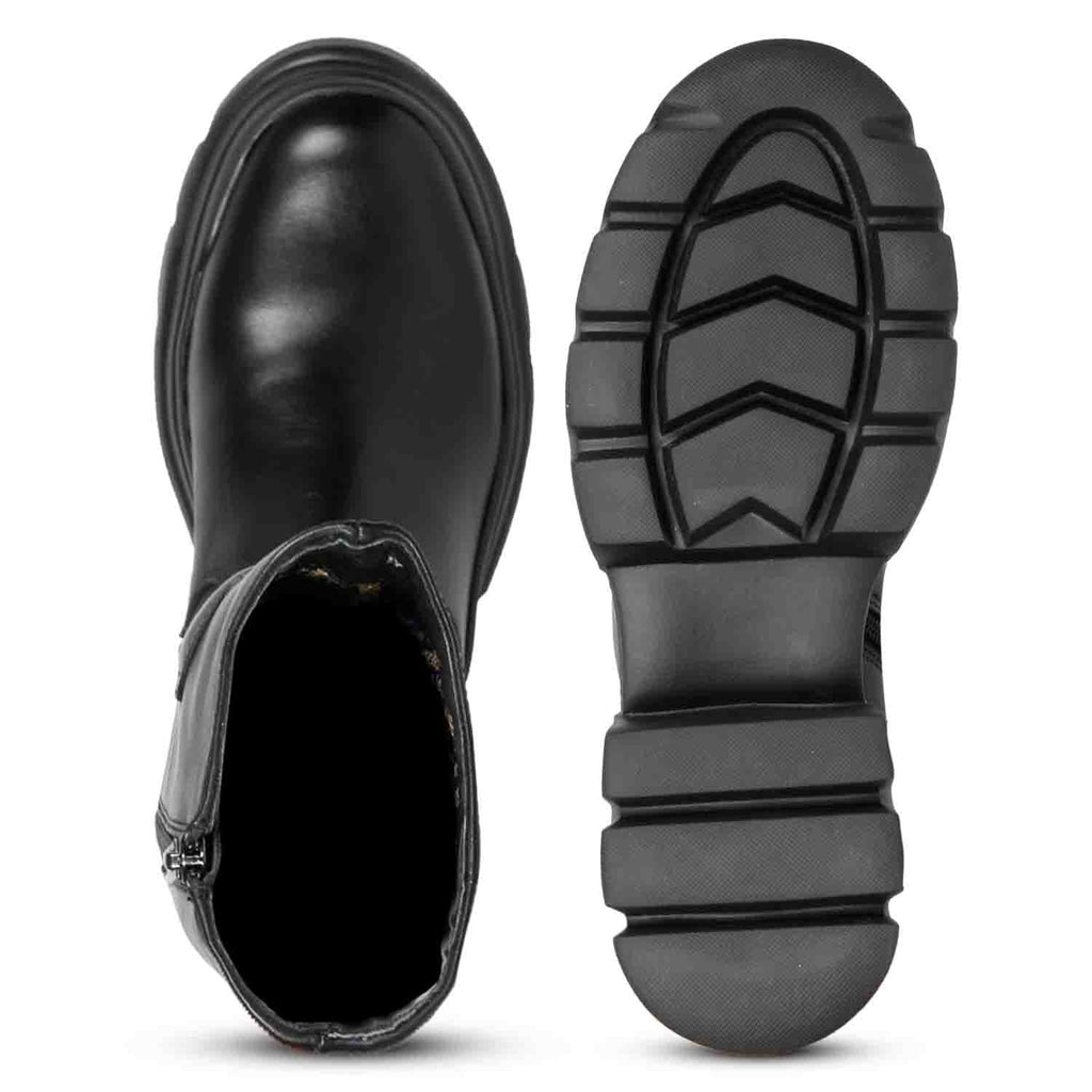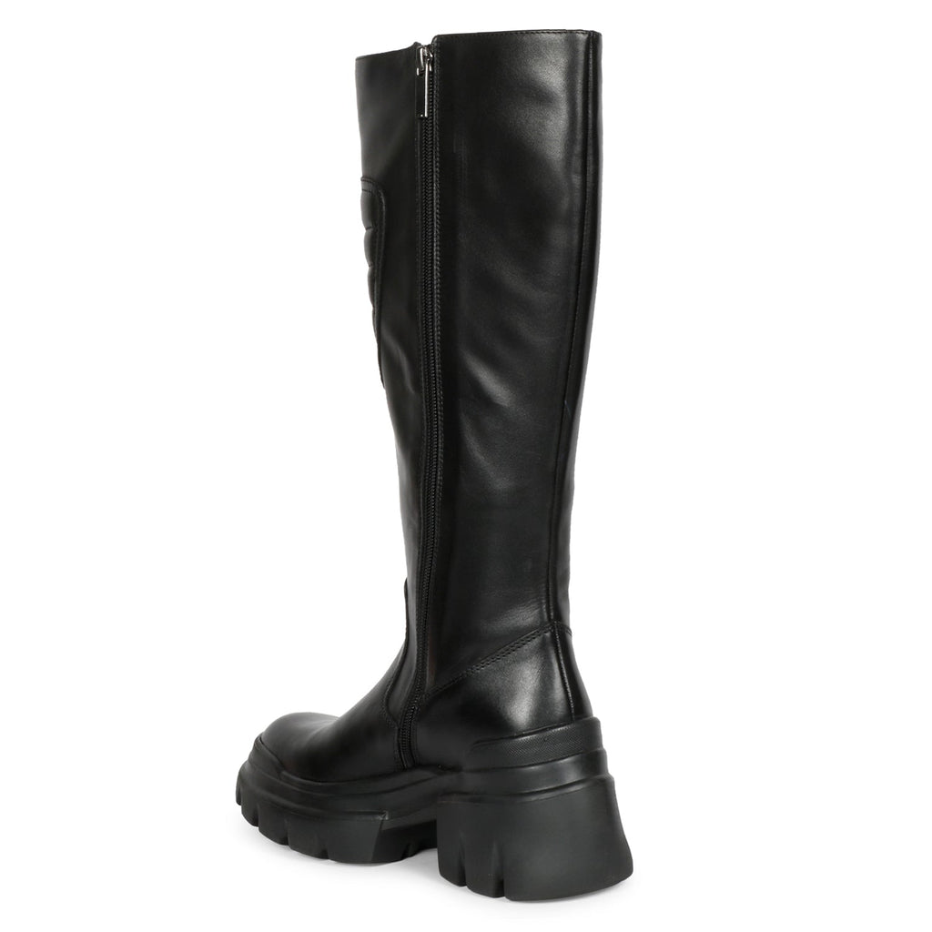 Saint Eloïse Black Leather Lug Sole Long Boots