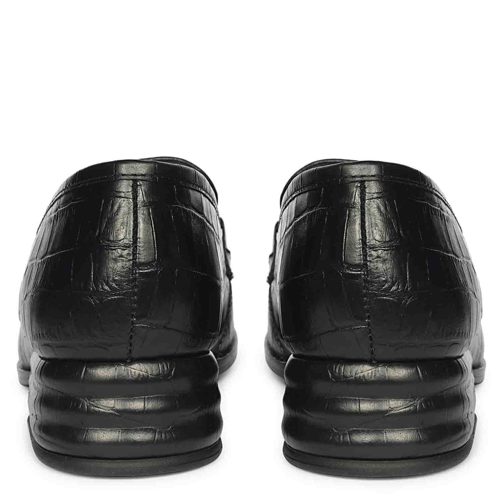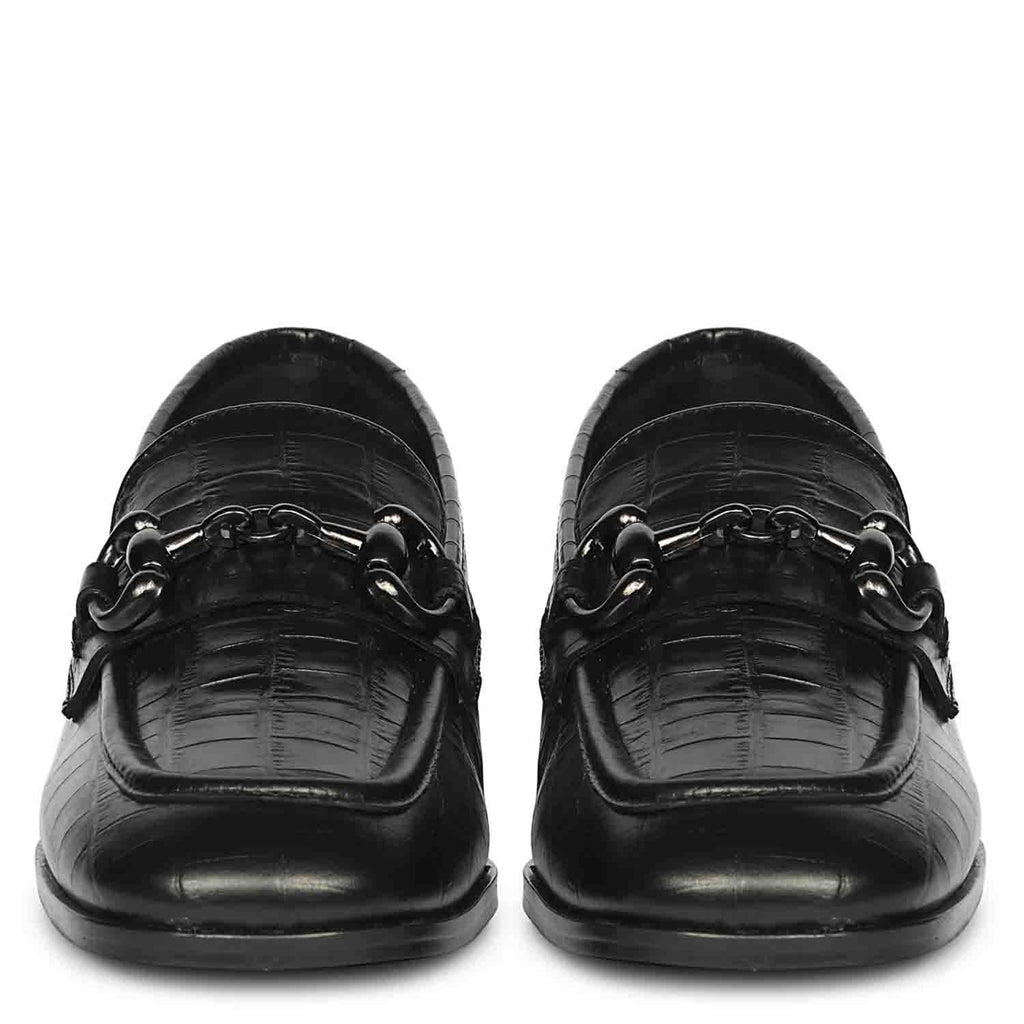Saint Jacqueline Croc Embossed Black Leather Moccasins