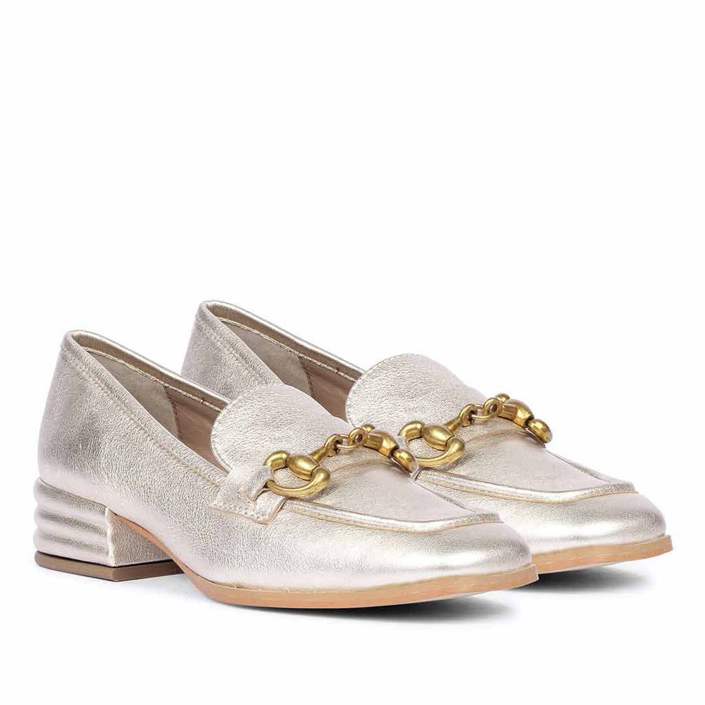 Saint Jenny Gold Leather Handcrafted Moccasins