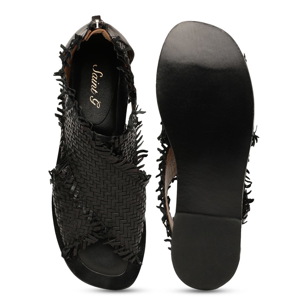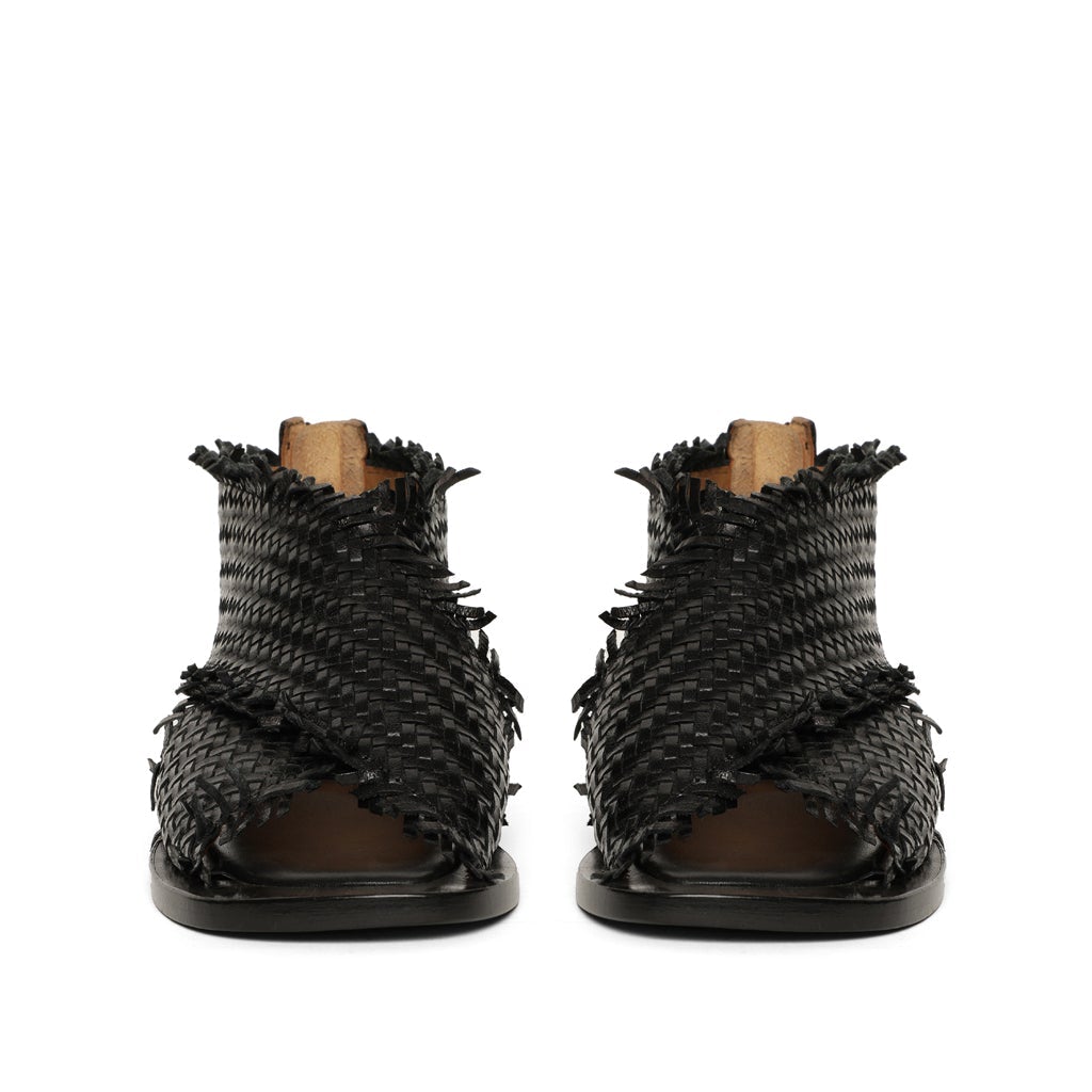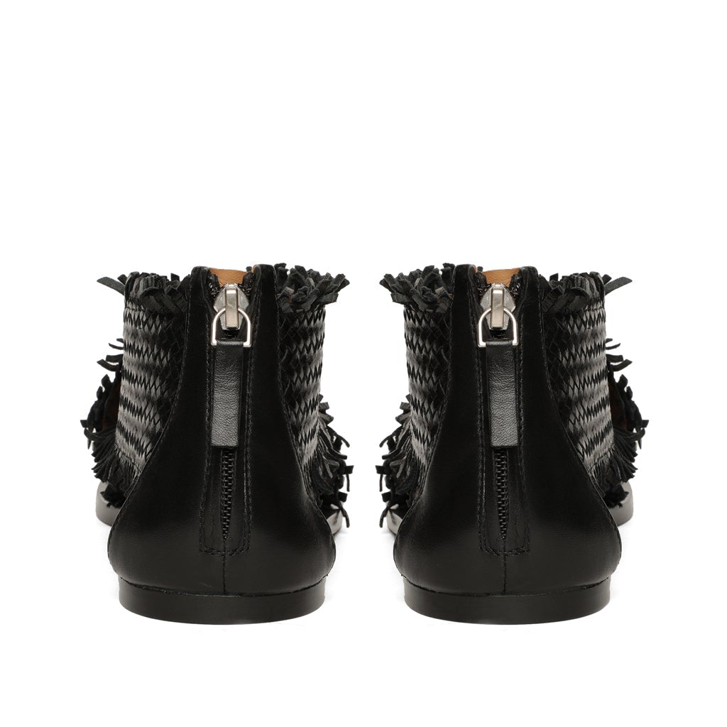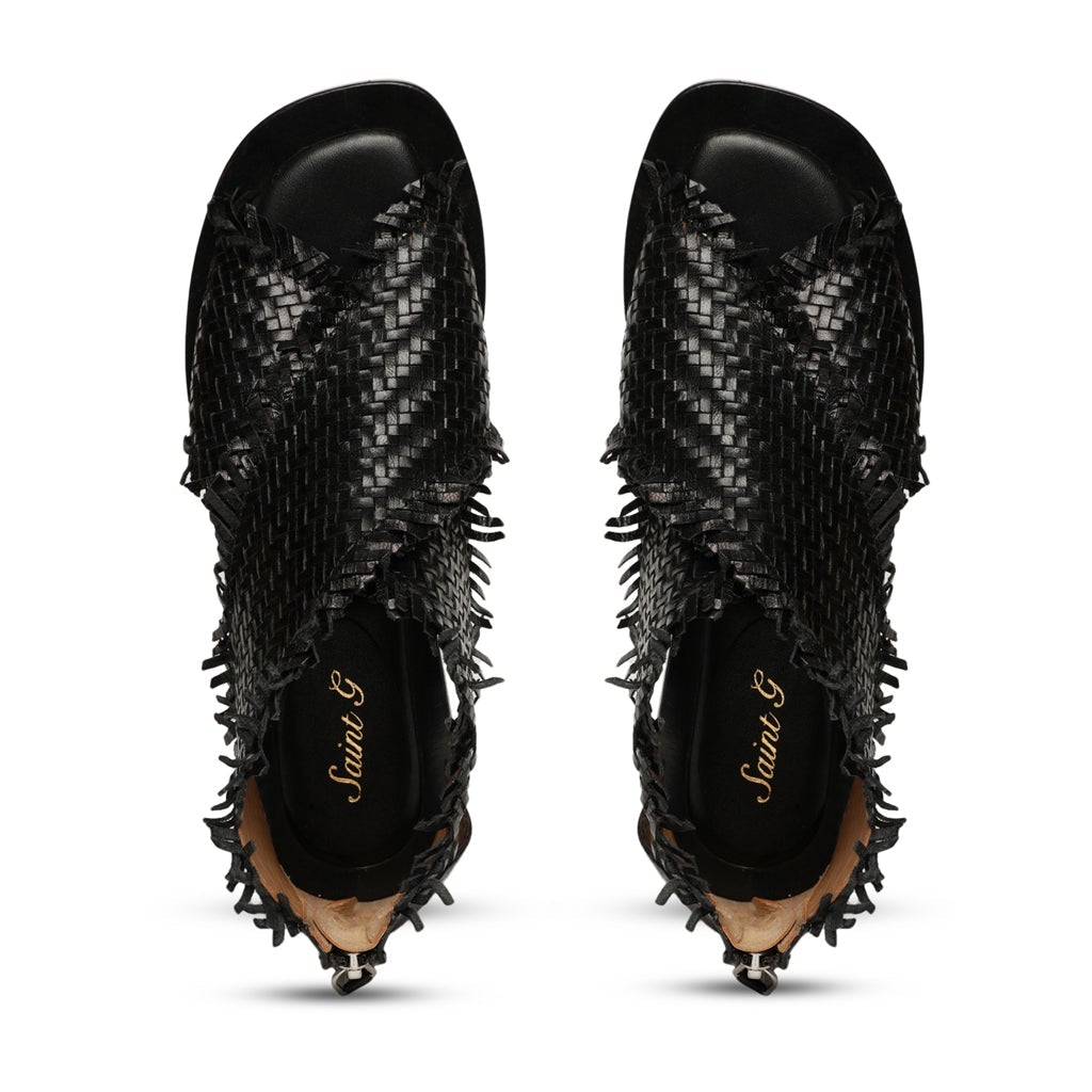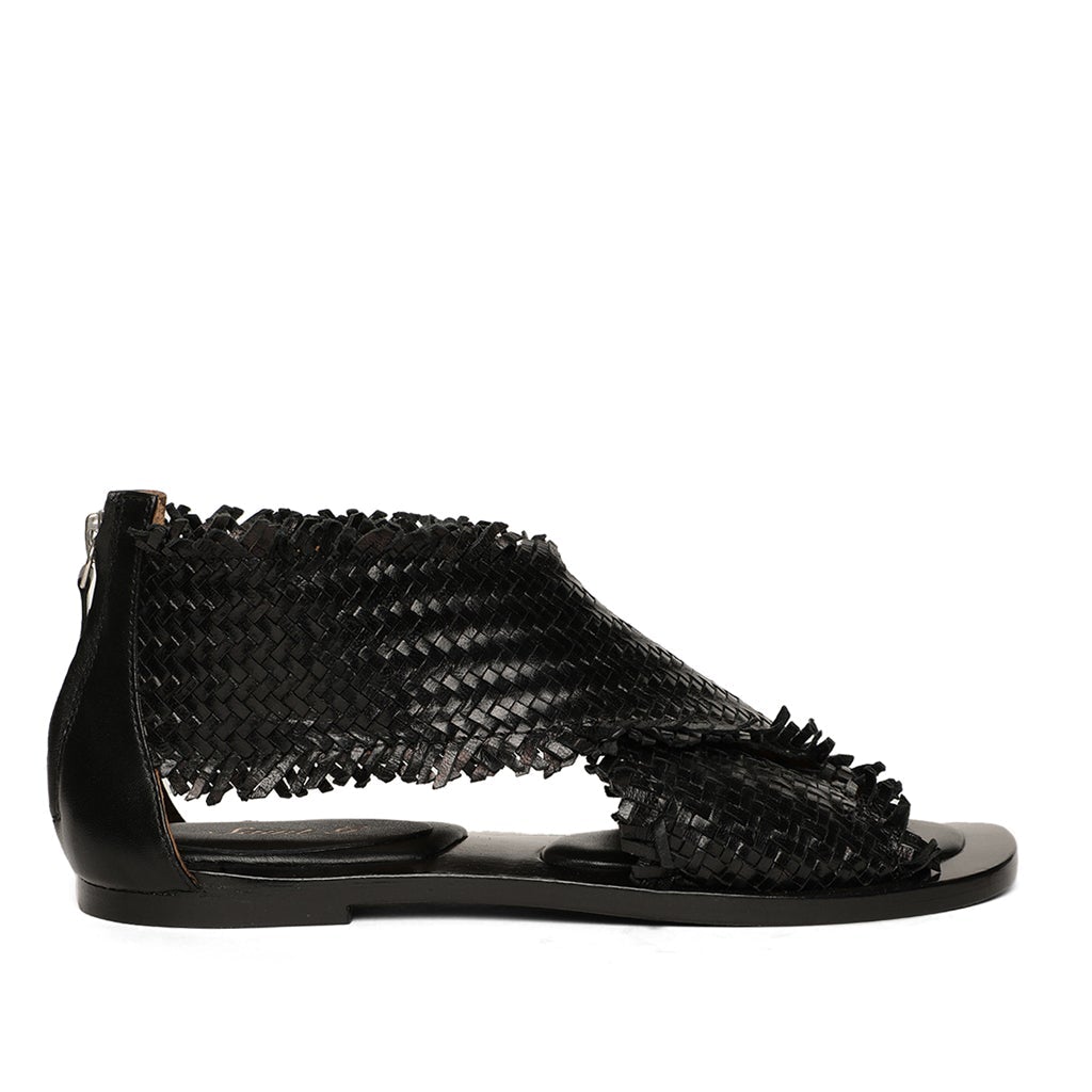 Saint Filomena Black Woven Leather Back Zip Sandals