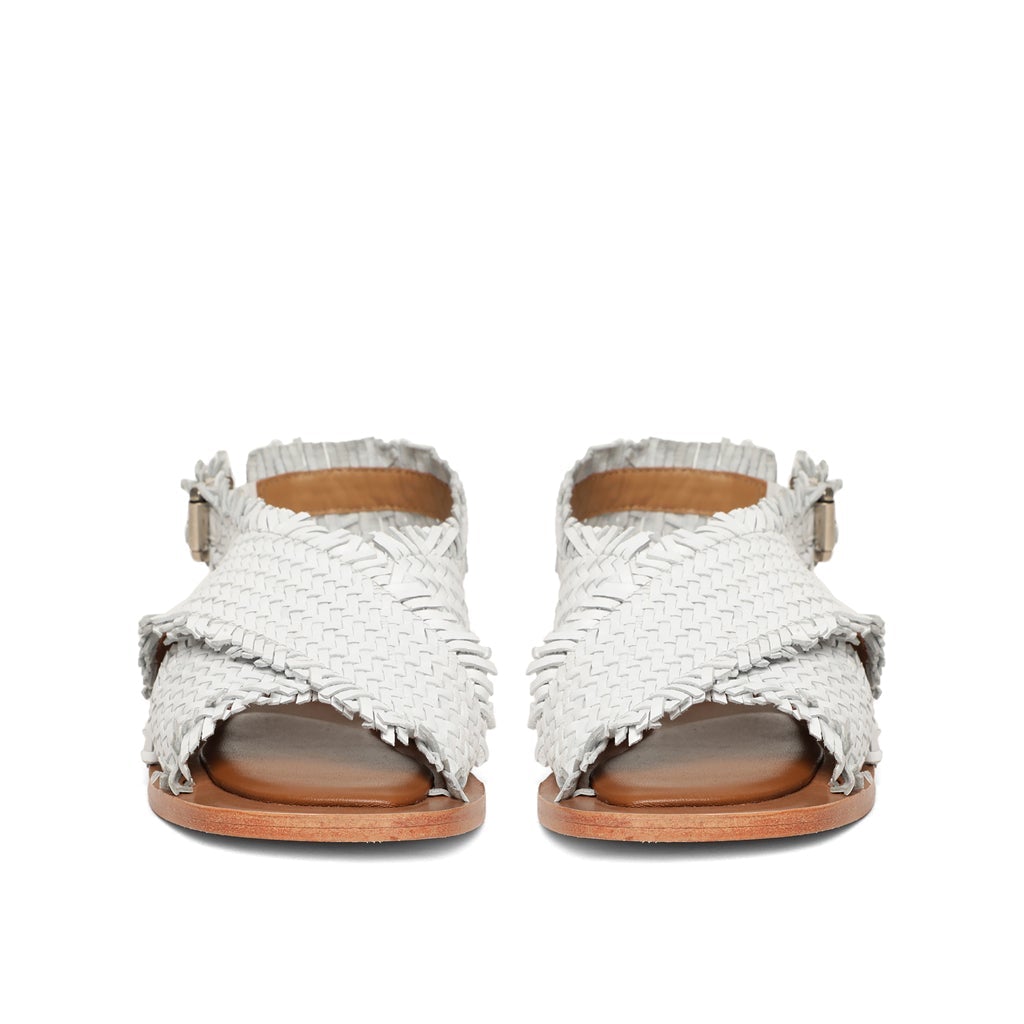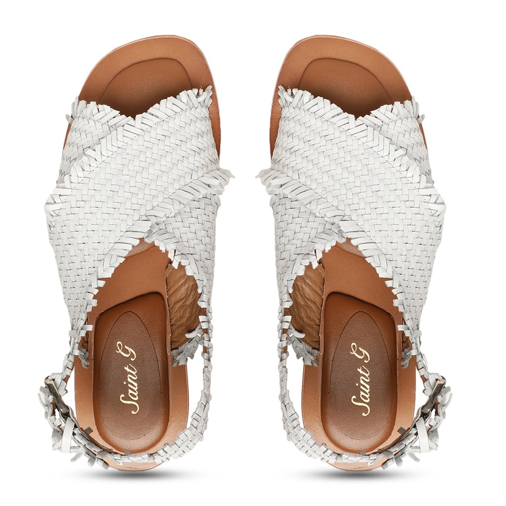 Saint Gaetana White Woven Leather Sandals