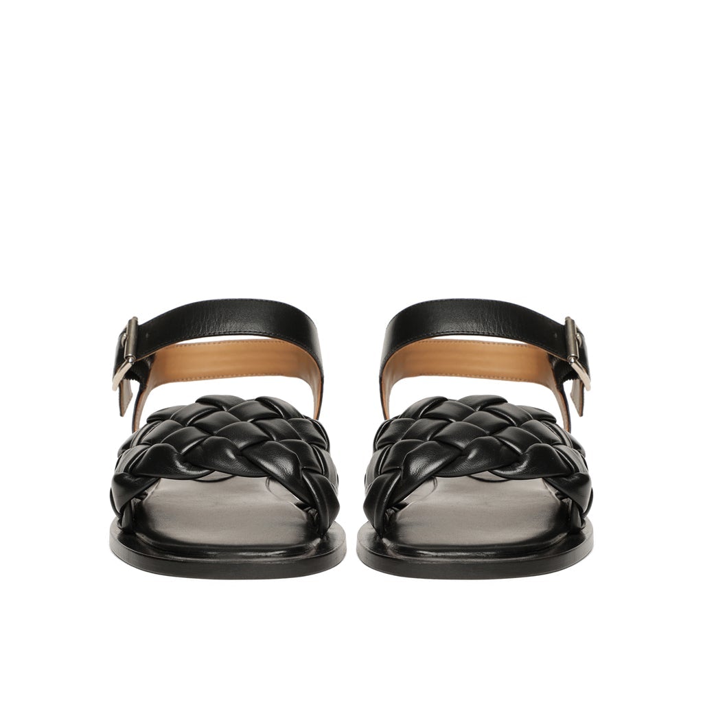 Summer officially makes its entrance with these stylish sandals. Made with elegant  padded woven leather and adjustable ankle strap. features leather lining, leather footbed and tunit sole. This sandal will be your perfectly for any occasion. Team with cut off jeans, mini or maxi dress and a raffia tote and you are good to go.