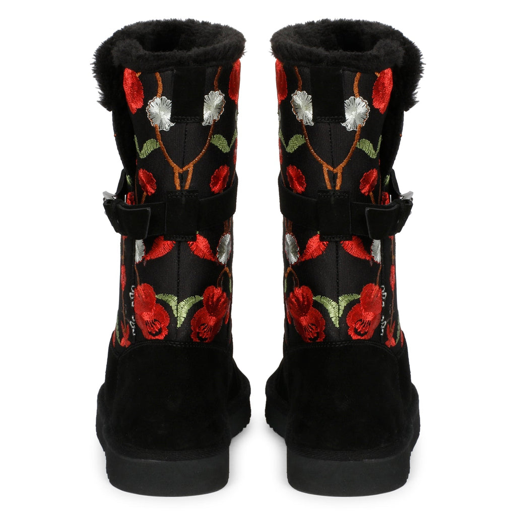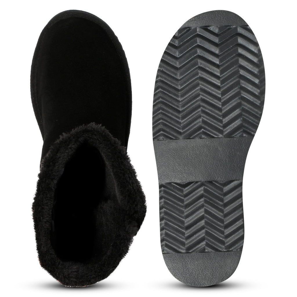 The dazzling, buckle decorative floral embroidered suede leather upper and fur boots will instantly give your winter look a fun party vibe. These snow boots are designed with fur lining and fur insole to keep your feet warm while you have fun. Enjoy your step with comfortable rubber sole.