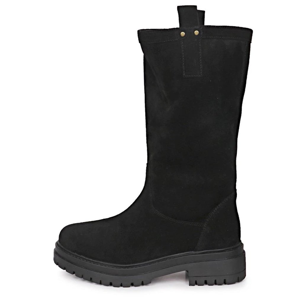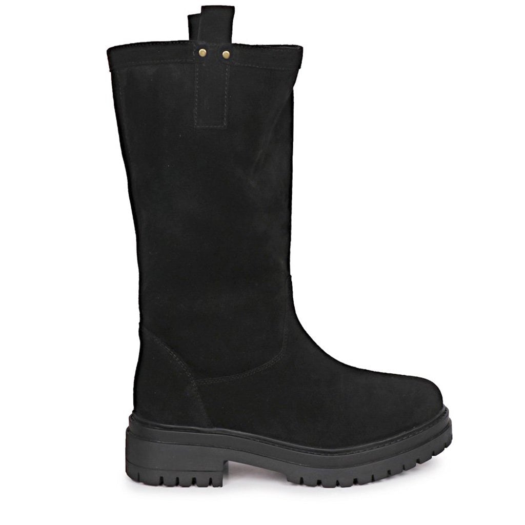 Saint Alexandra Black Suede Leather Pull On Calf Boots