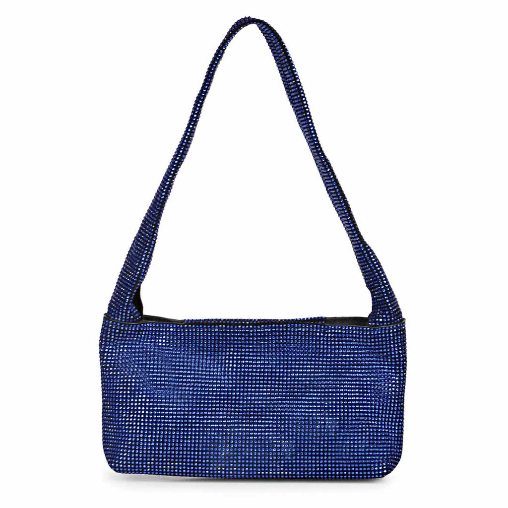 Show your unique style with this exquisite Alma Crystal Embellished Blue Leather Mini Handbags. It features luxurious blue crystal embellished leather upper and cotton lining with a magnetic button closure.