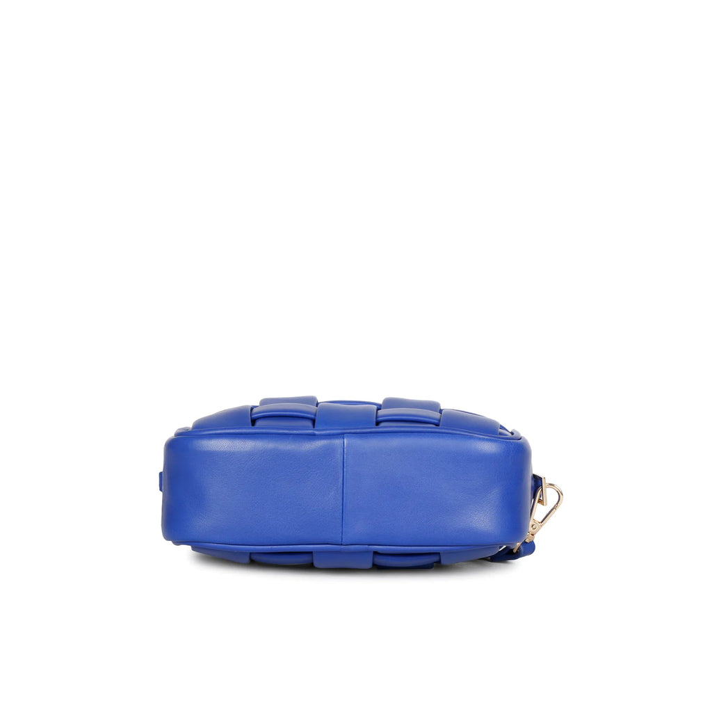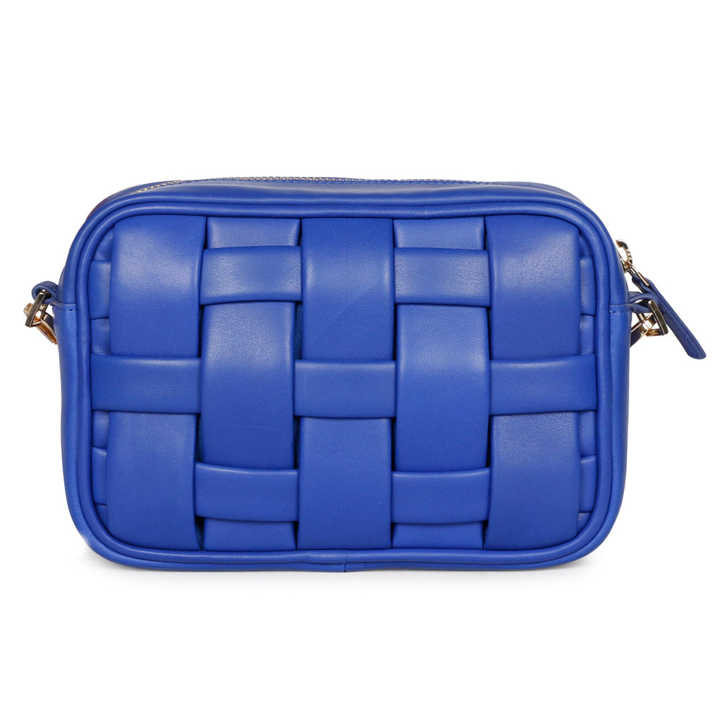 This Bennet blue sling bag is crafted from woven leather. The versatile look is perfect for daytime and evening silhouettes. In a soft leather this bag has an adjustable shoulder strap and a gold hardware. You can pair this beautiful designer bag with any look and instantly look super chic.