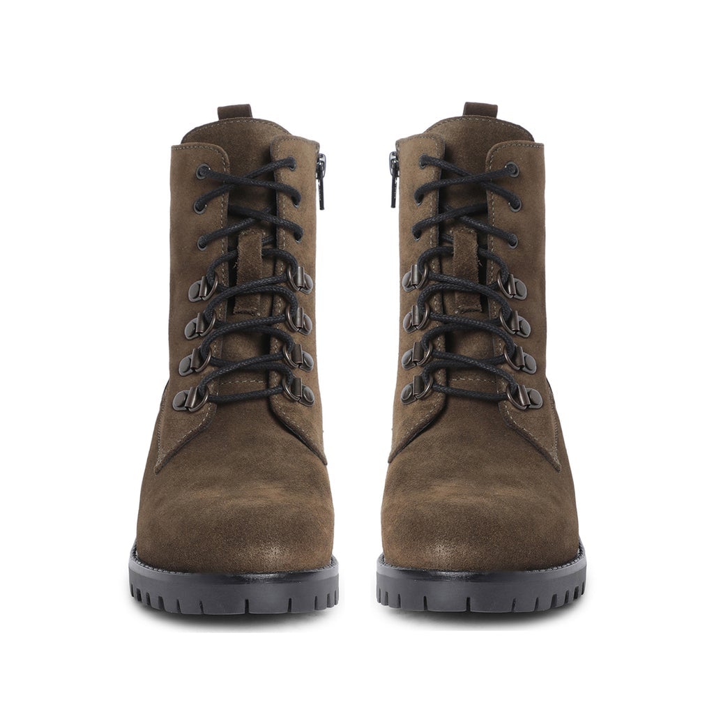 Sophistication and style go hand-in-hand when it comes to SaintG latest collection. These Saint Moira olive biker boots are crafted from suede leather upper, soft leather lining and padded leather footbed. Featuring lace-up front with metal eyelet, comes with a slip-resistant handmade eva sole which ensures that you do not slip or fall on any surface. the rounded toe and leather pull up tab completes the design.