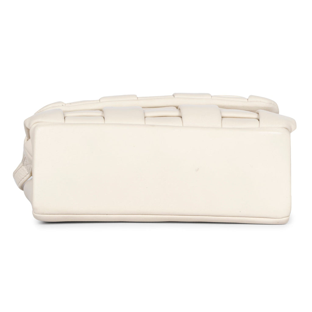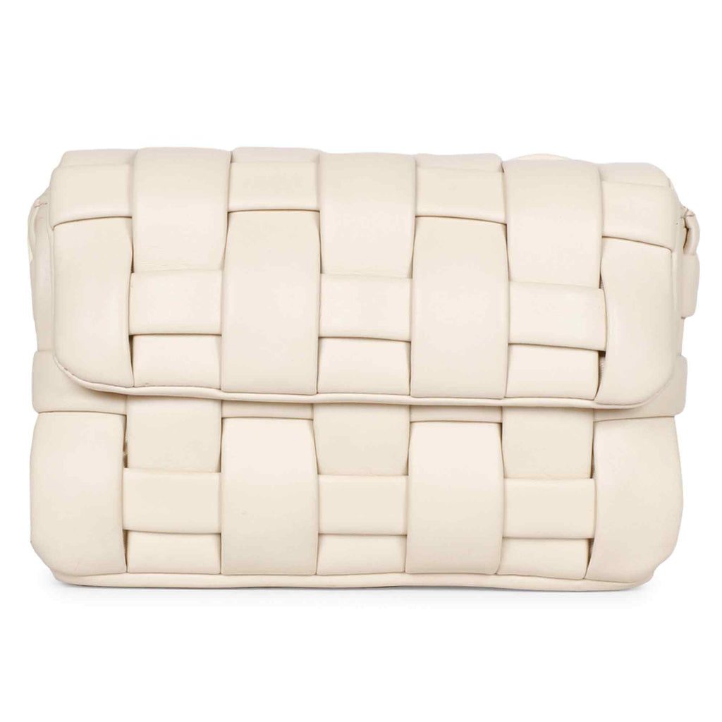 A perfect blend of style and utility, This sling bag is crafted from woven leather. In a soft leather this bag has an adjustable shoulder strap and gold hardware, secure with magnetic button closure.