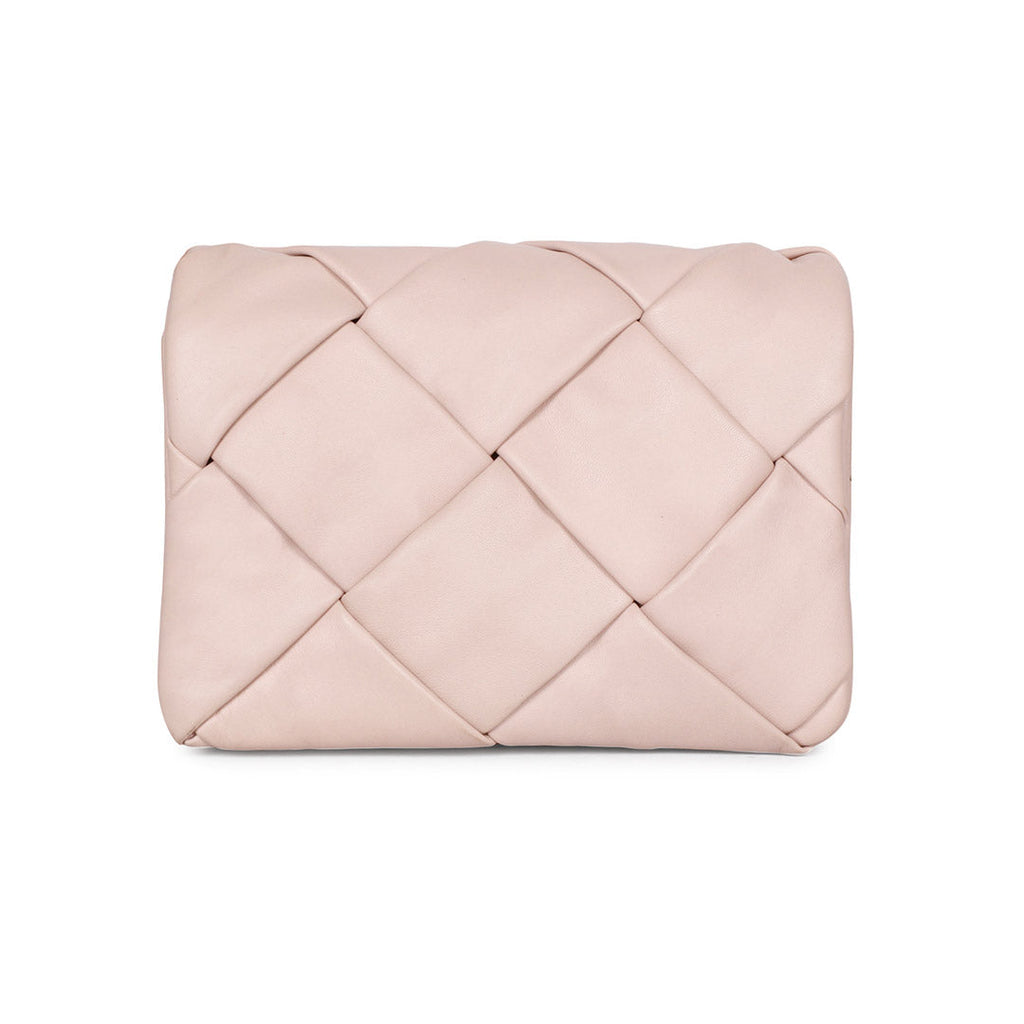 Add a little luxe to your look with this Kate woven bag. Made of premium quality leather for durability, this pink blush leather cross body bag has an adjustable strap for carrying comfort. It features a snap closure and a woven pattern for added attraction.