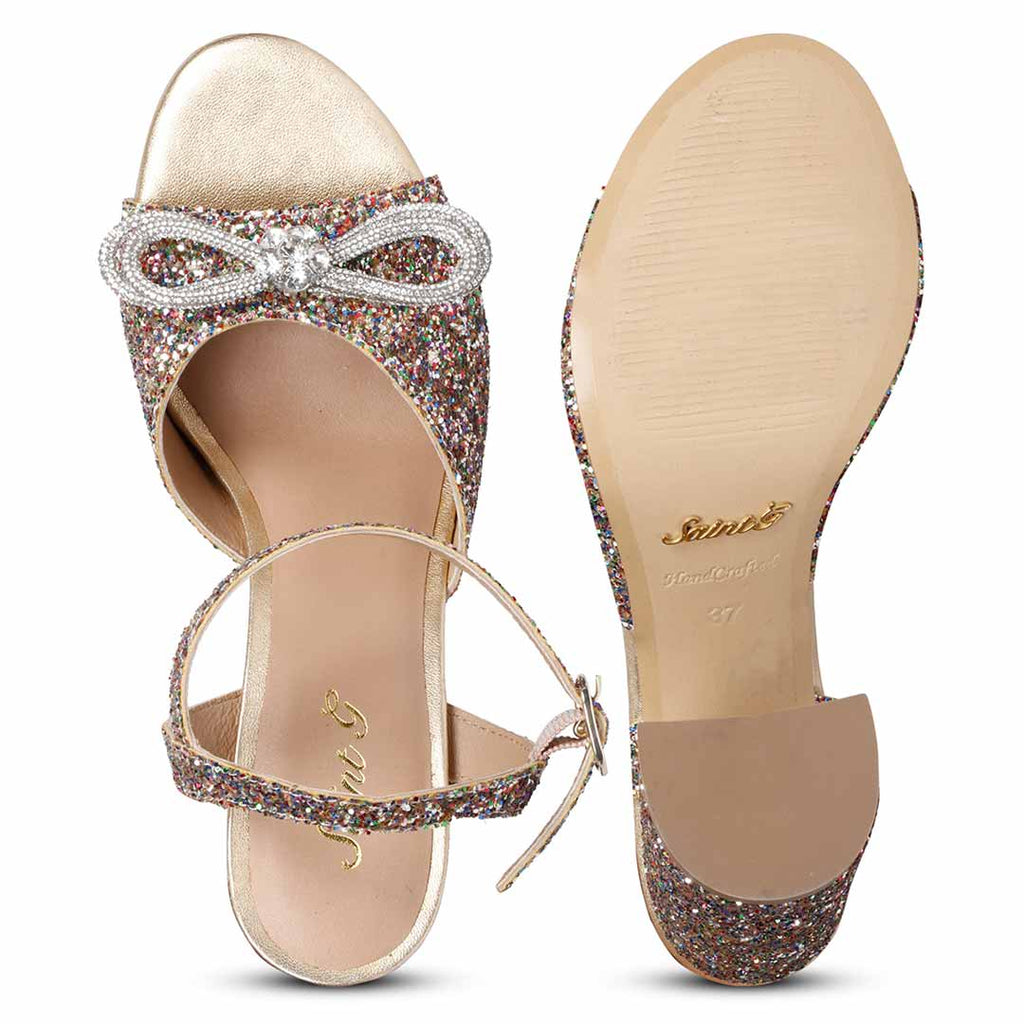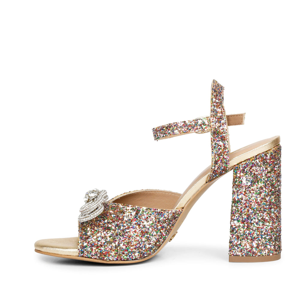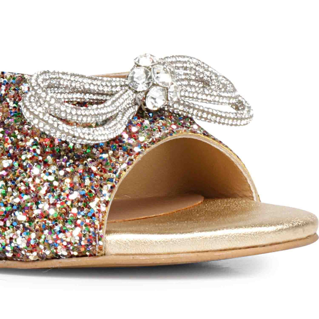Leonara Bow Detail Multi Glitter Leather Block Heels