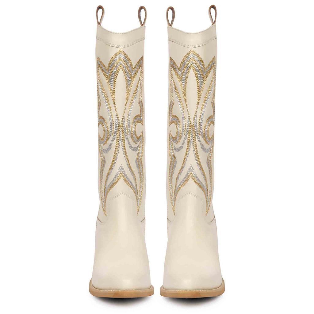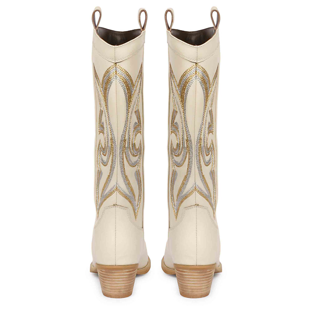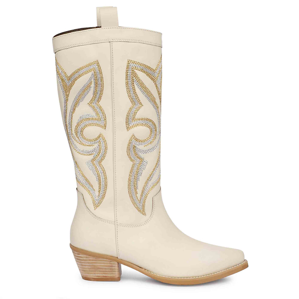 Saint Martina Off White Stitched Leather Cowboy Boots