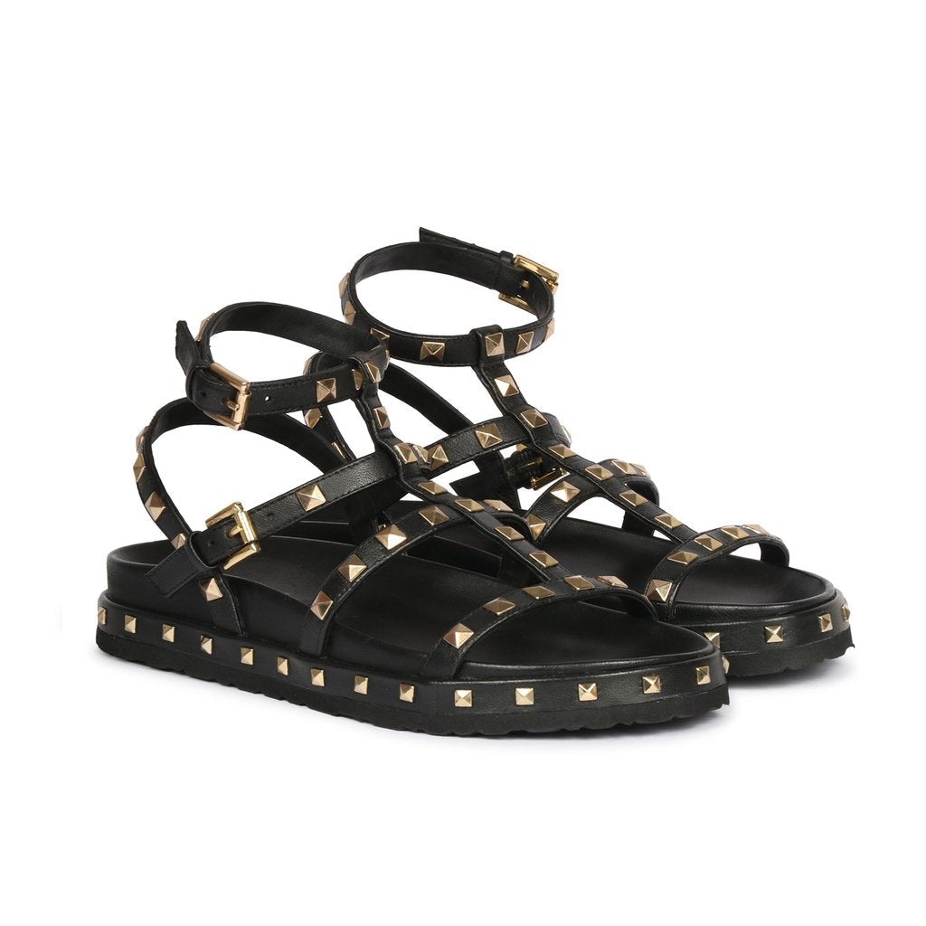 Spruce up your style this season and dress up your feet with the pair of Saint G leather  handcrafted upper, metal stud embellished, strappy sandal. It comes with an adjustable ankle strap with pin-buckle fastening and open toe makes up the rest of the must have style. Straps and mid sole embellished with metal studs. Breathable leather lining and padded leather sock allow you to wear the latest styles in lasting comfort.