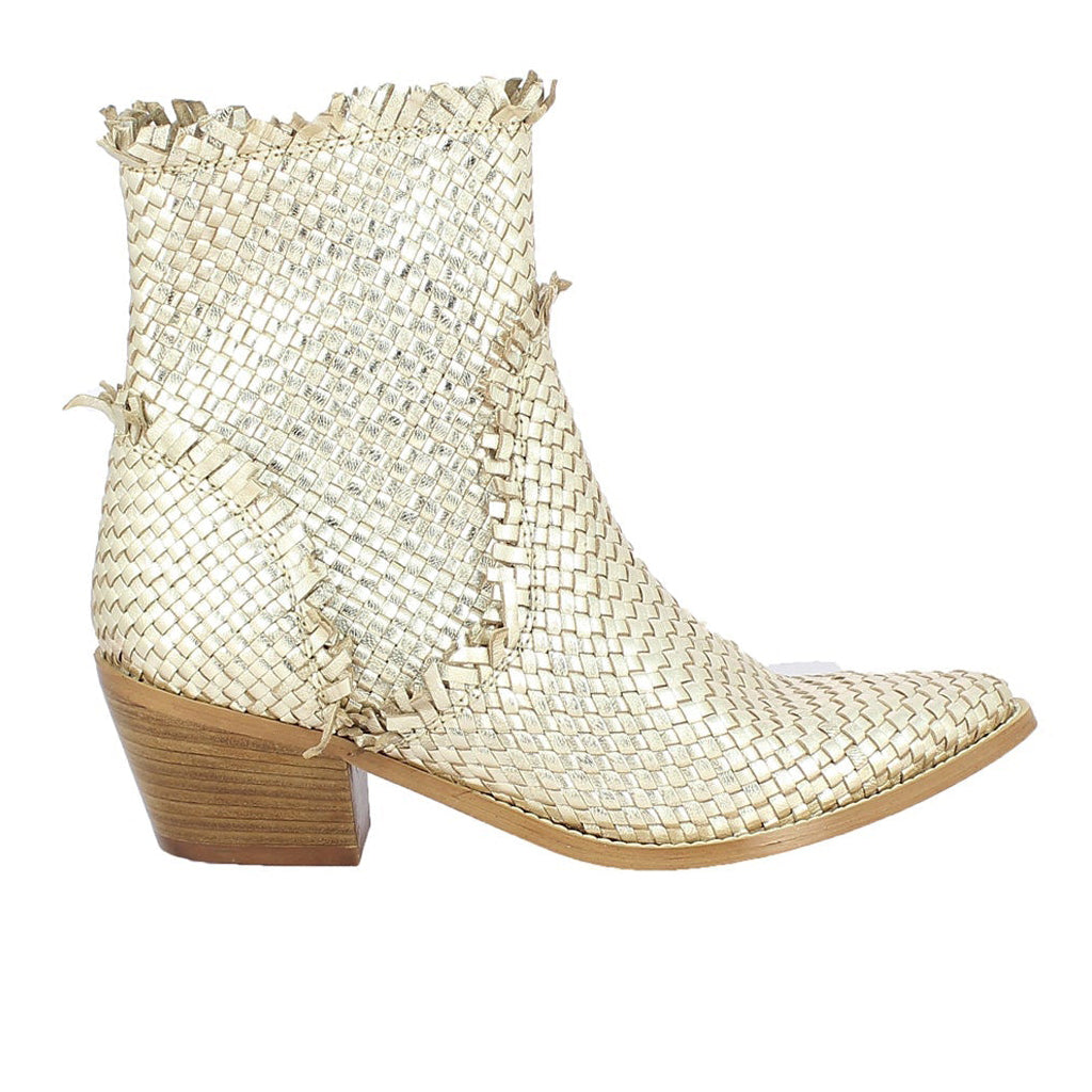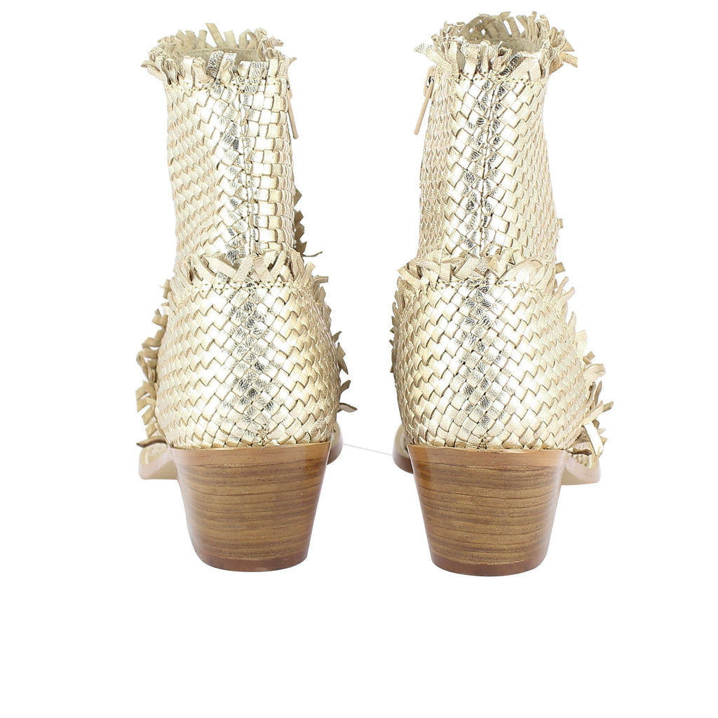This woven leather handcrafted ankle boot captures the essence of modern luxury. It features a pointed toe, veneer leather covered low block heel, pletin leather upper and a beautiful fringed weave design. Full leather lining and insole for natural comfort and breathability. It comes with inside zip fastening. Made perfectly with the finest material and quality products.