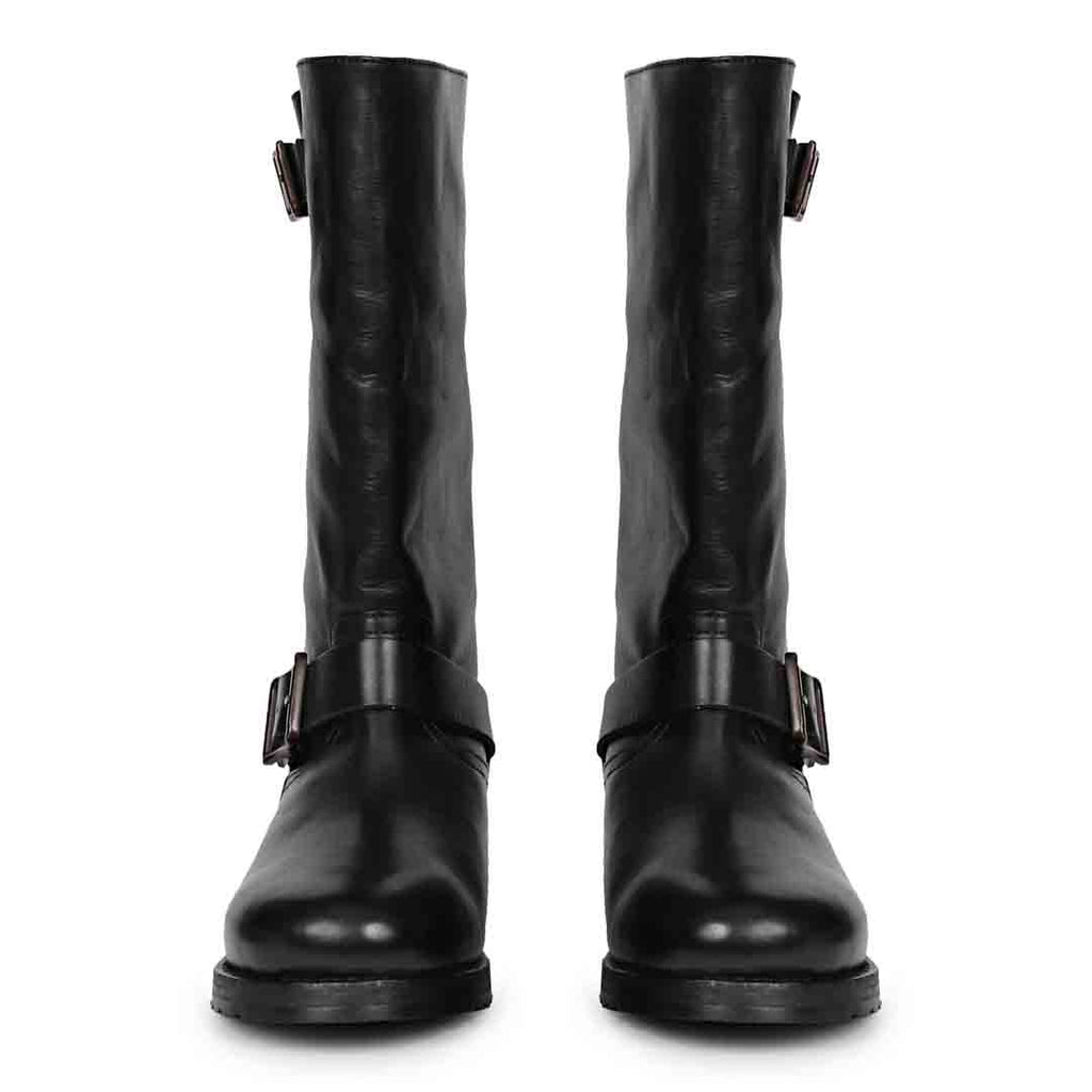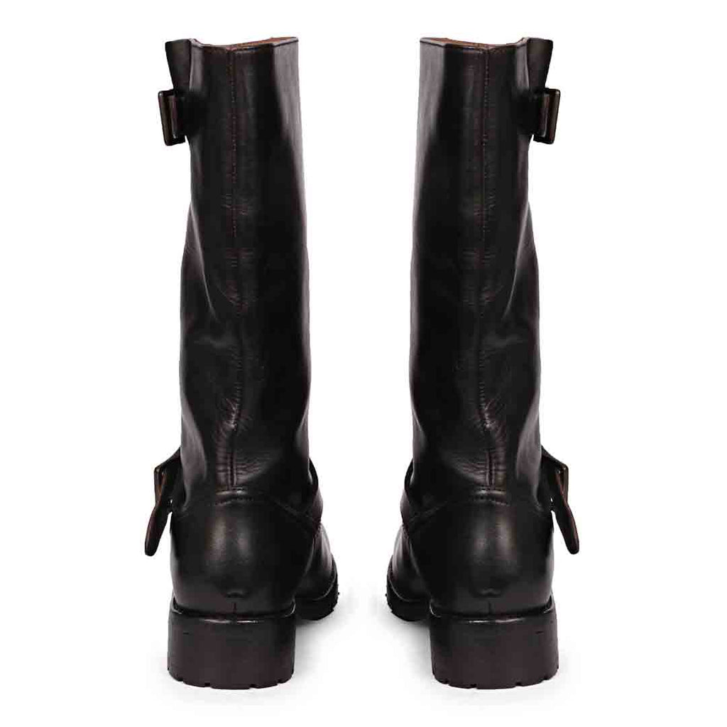 Saint Adette Buckle Decor Black Leather Calf Length Boots