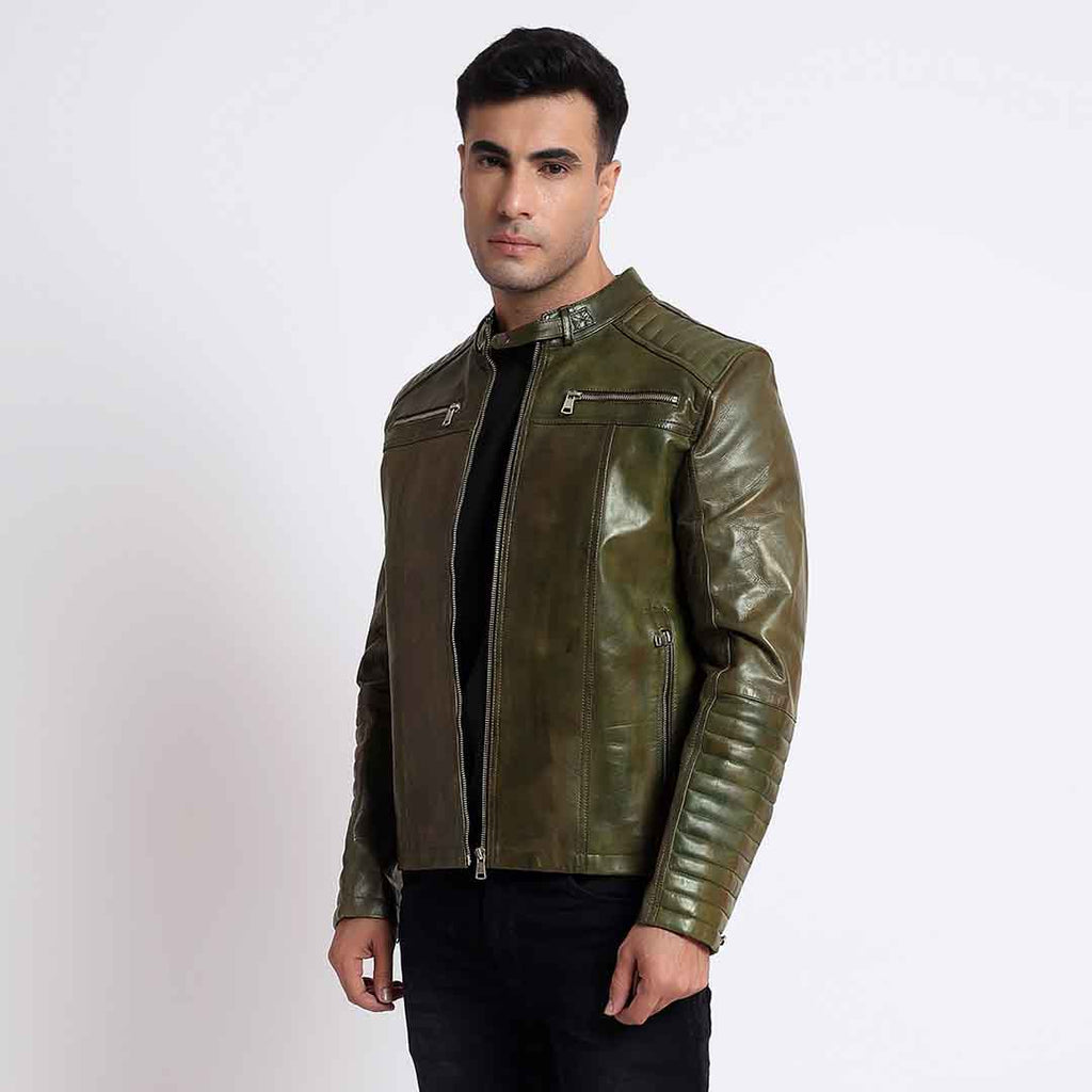 Saint Agostino Olive Leather Men's Cafe Racer Jackets