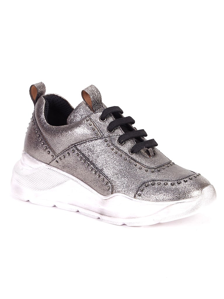 A pair of round-toe metallic sneakers, has regular styling, lace-up detail, light weight EVA sole. Embellished with studs.