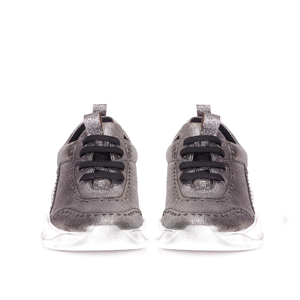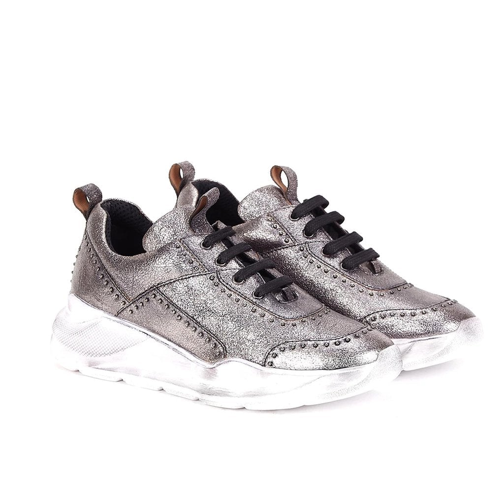 Saint Alaricia Pewter Crackle Leather Sneakers