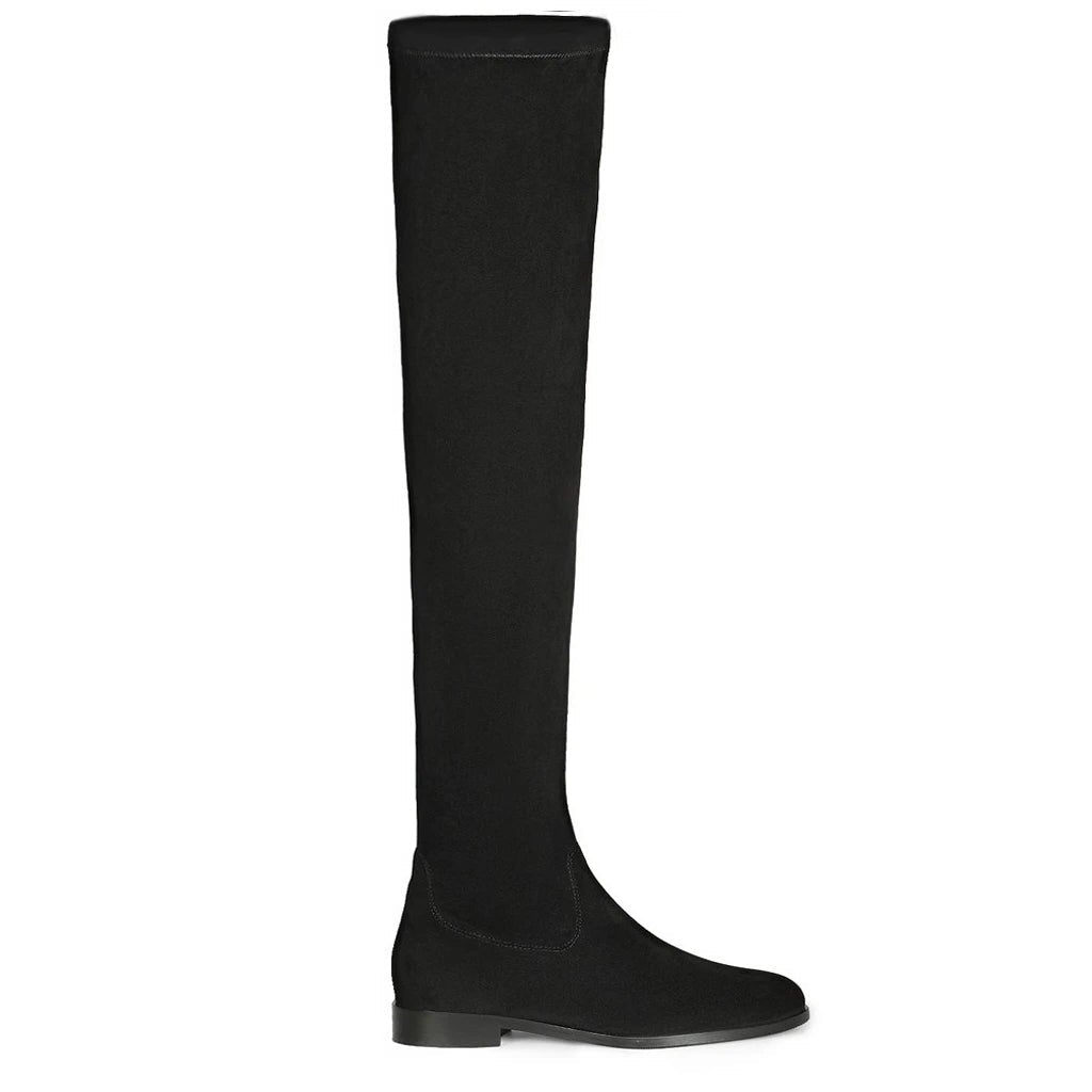 -SaintG women's low heel knee high stretch suede upper with inner leather material boot.