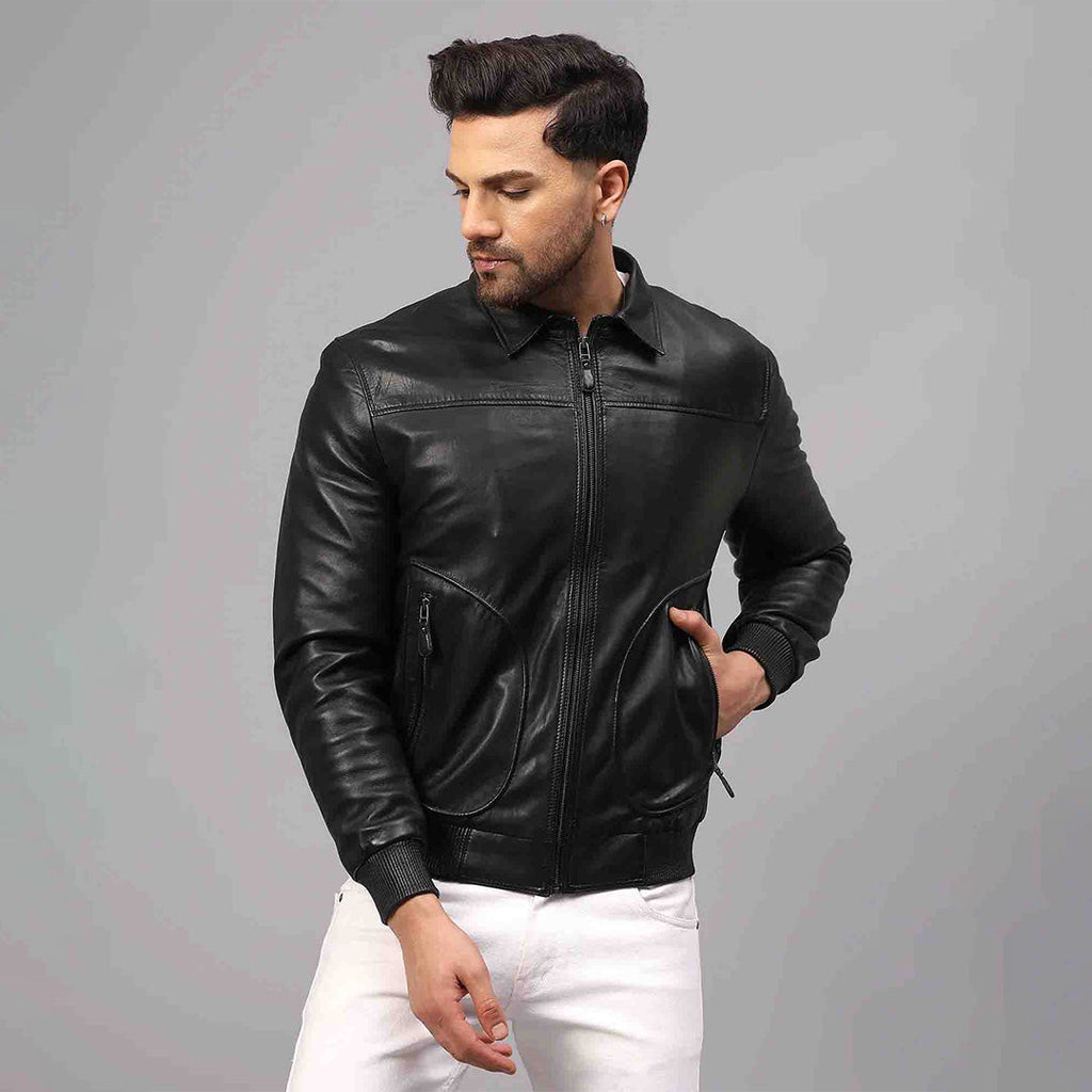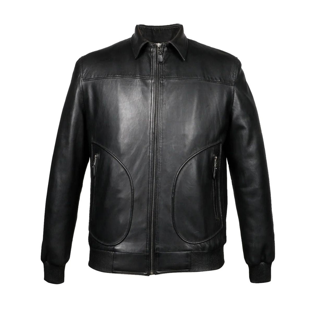This premium Black Andriun Leather Jacket is designed for men with a luxuriously crafted washed genuine Leather, Cotton Fabric and Taffeta Sleeve Lining, offering a zipper closure, spread collar, and ribbed cuffs and waist for protection against winter weather. Handcrafted with attention to detail, this jacket is a must-have for the winter season.