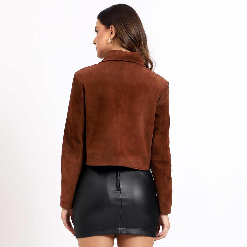 Saint Arlana Women Tan Suede Leather Cafe Racer Jackets