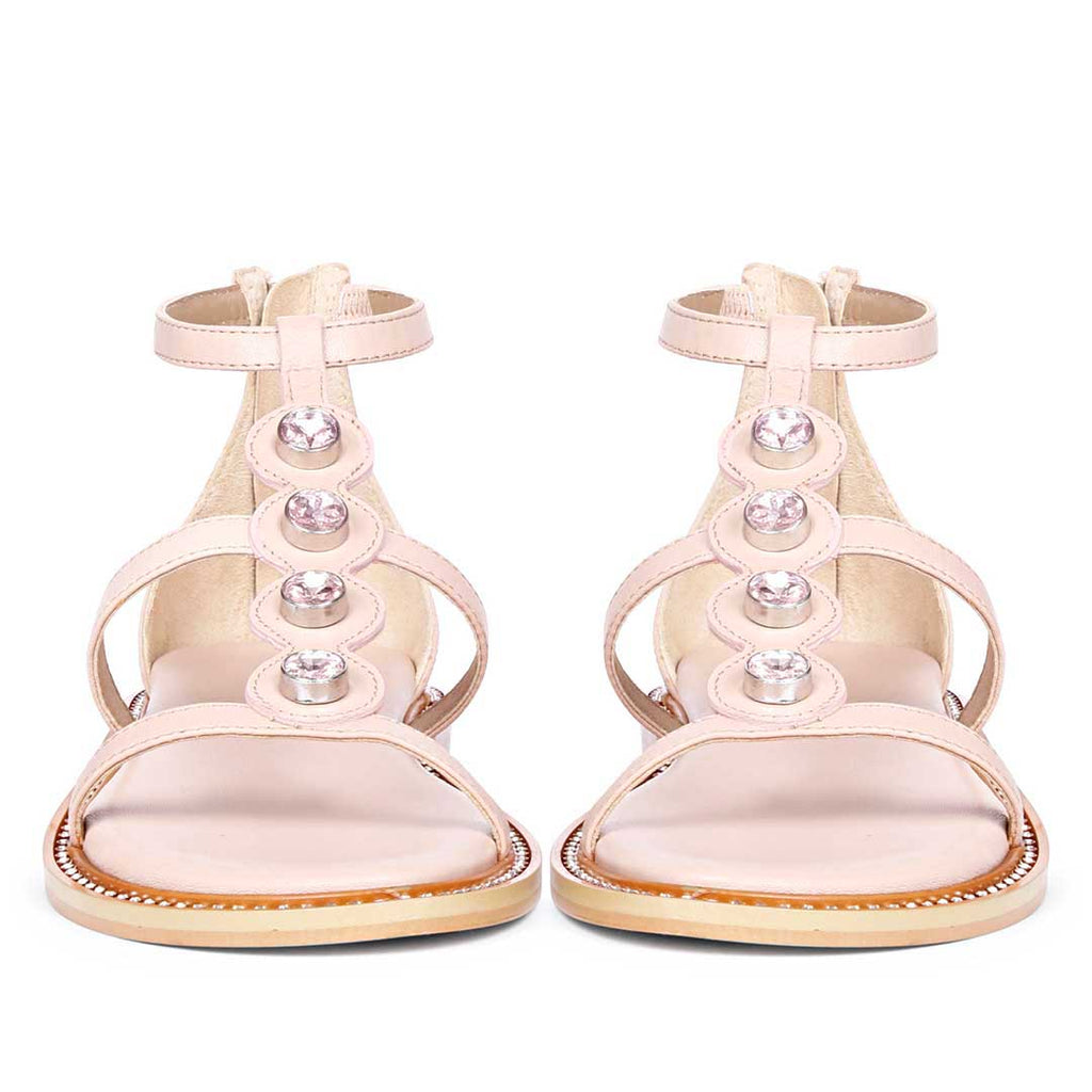 Saint Arlia Rivoli Stone Studded Light Pink Leather Sandals