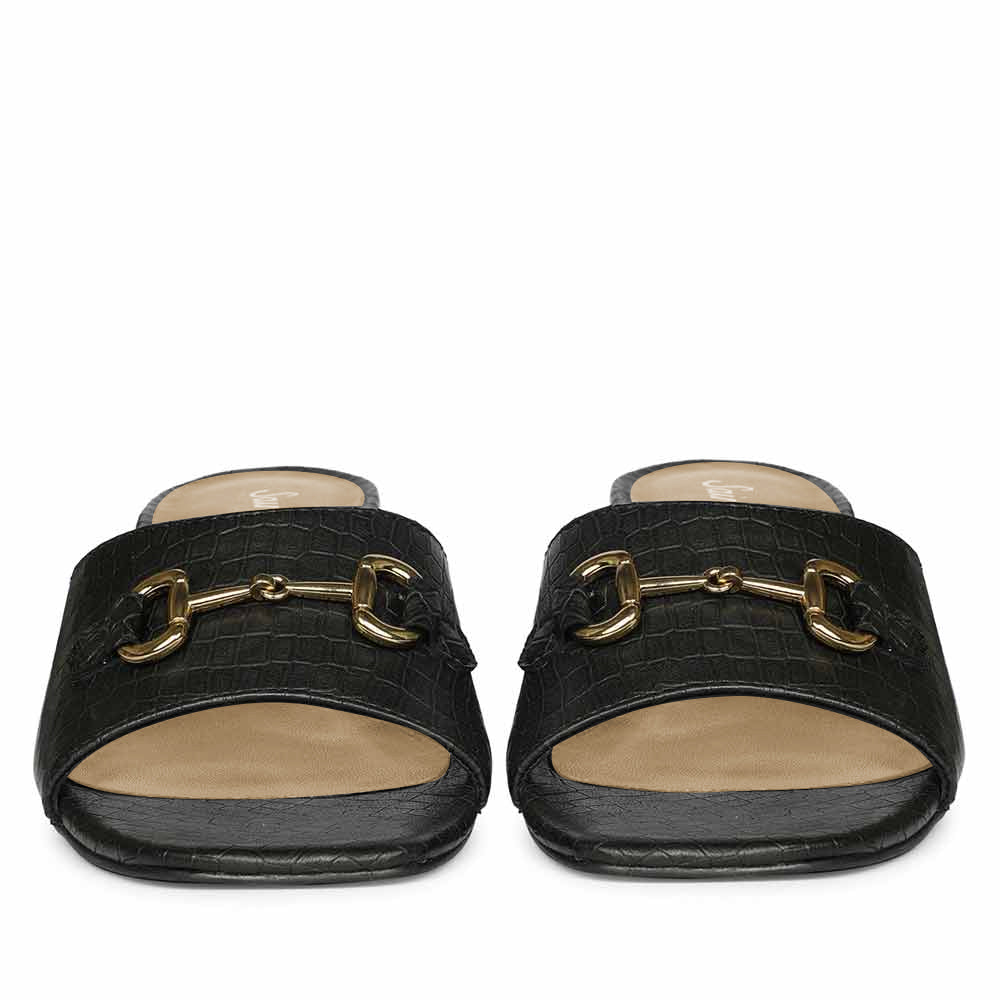 Saint Blair Black Croc-embossed Leather Block Heels