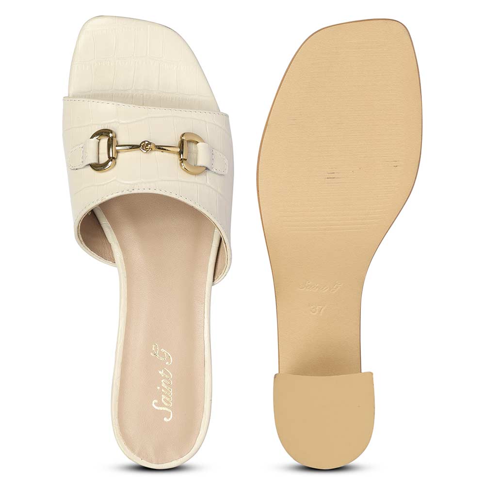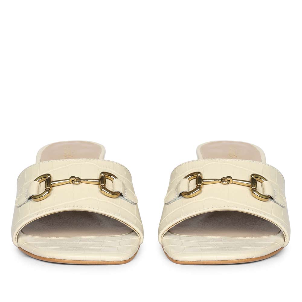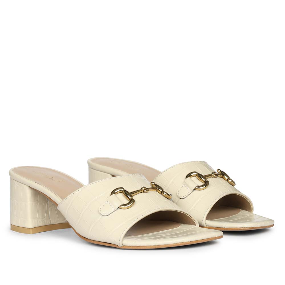 Saint Blair Off-white Croc-embossed Leather Block Heels