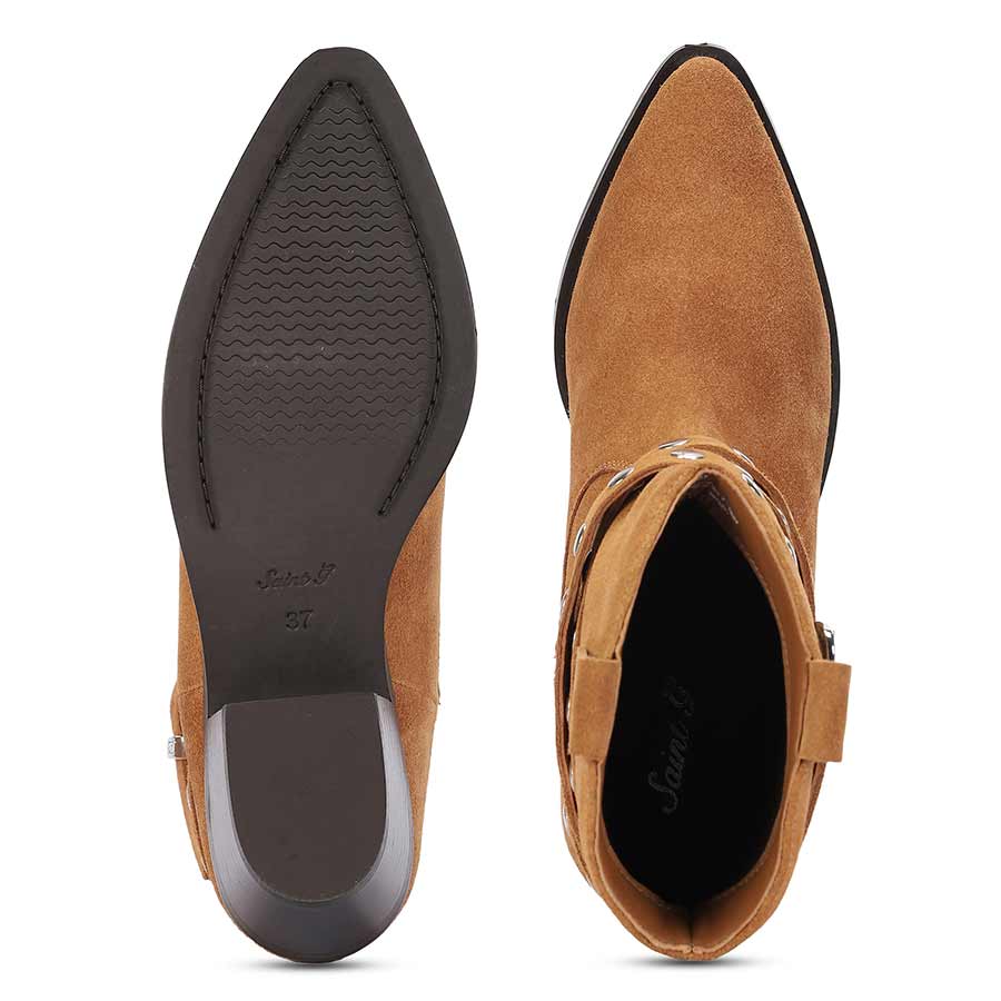 Saint Bristol Tan Suede Leather Studded Ankle Boots