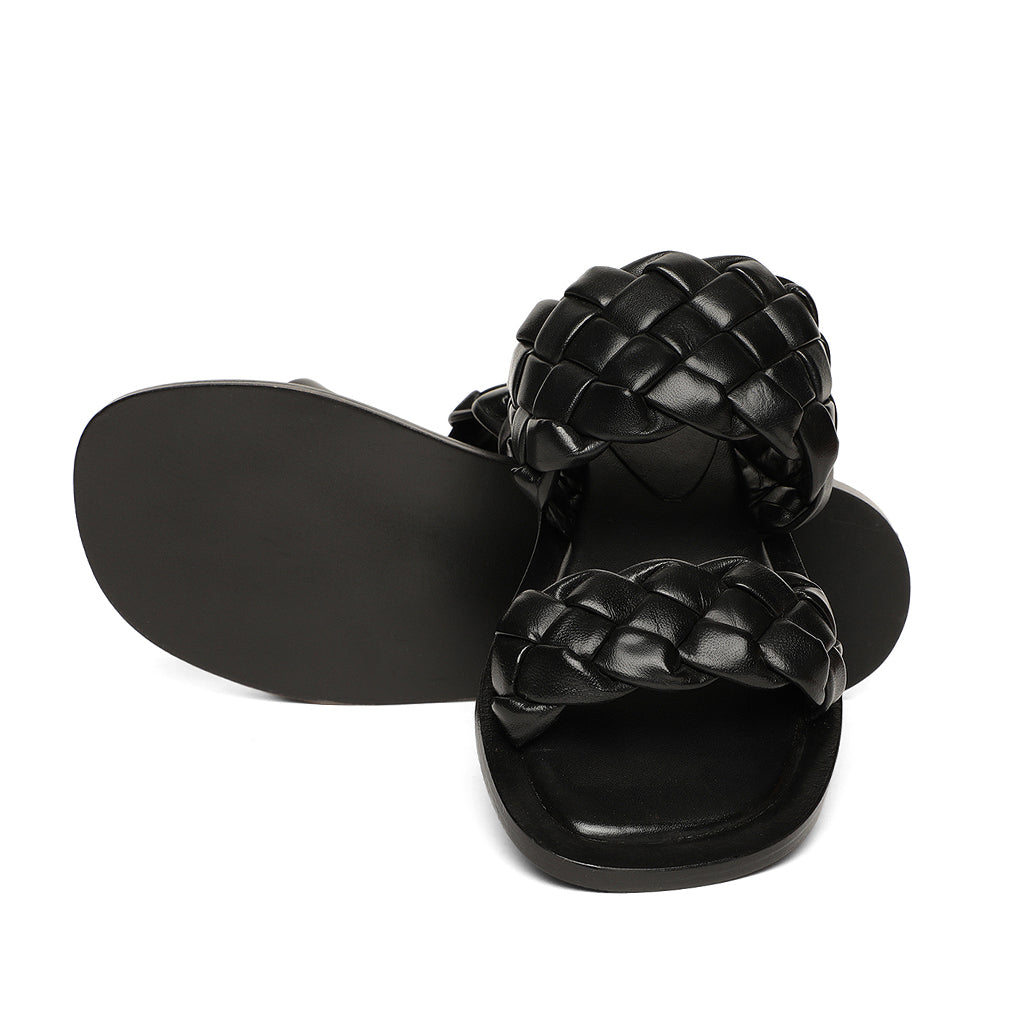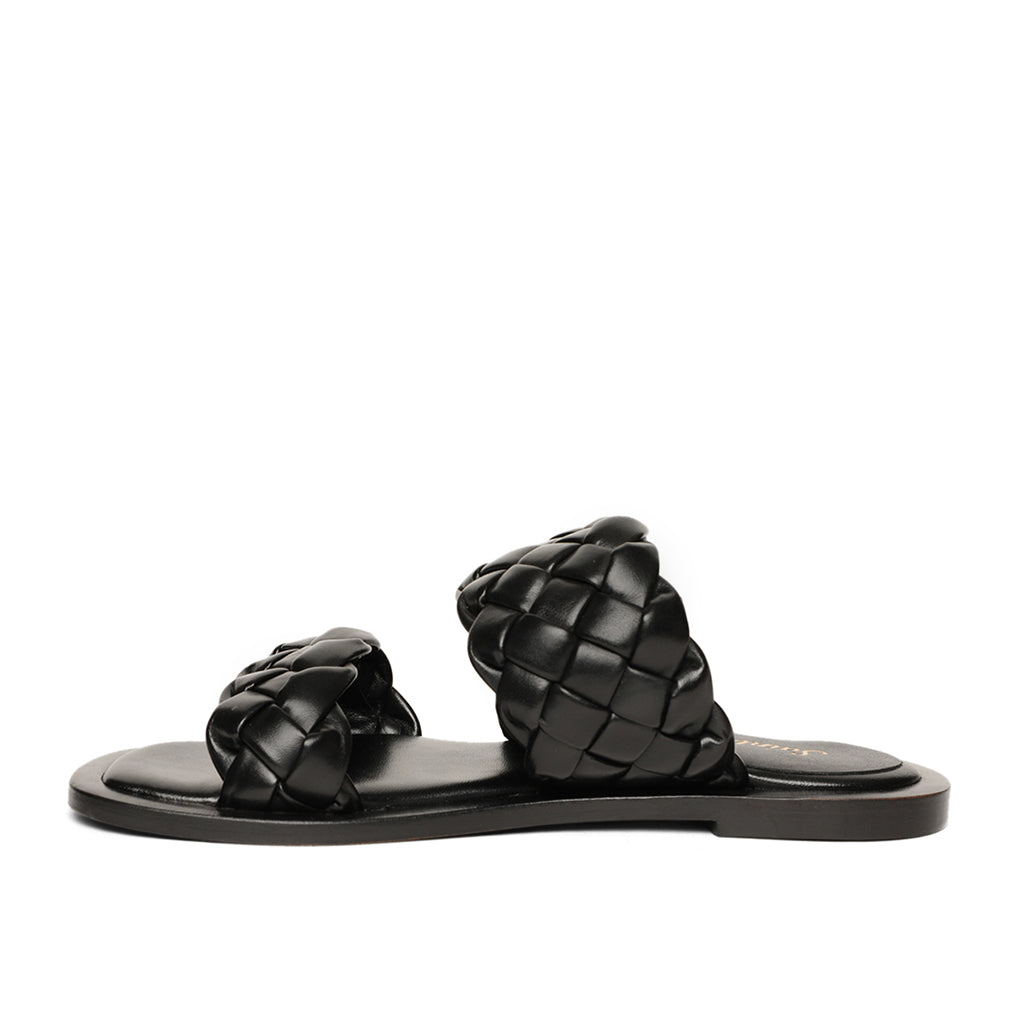 A mule sandal that just screams simplicity with style. The two bands upper in woven leather makes them even more attractive and the leather insole ensures maximum comfort all day long. Indulge yourself and freshen up that pedicure. They will look fantastic whether you choose a mini skirt, long flowing skirt or pants and by the way, don't forget to throw them in your suitcase when you head off on your next holiday.