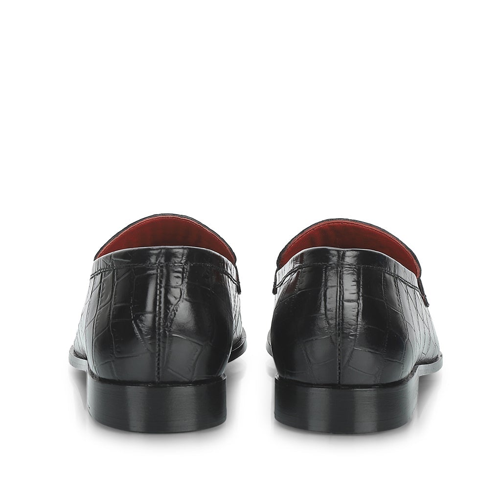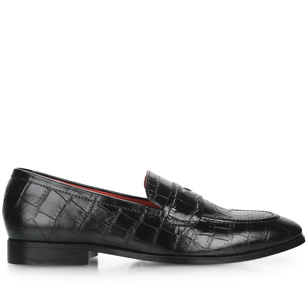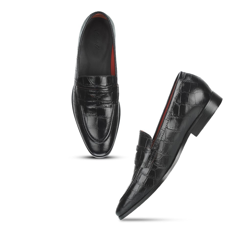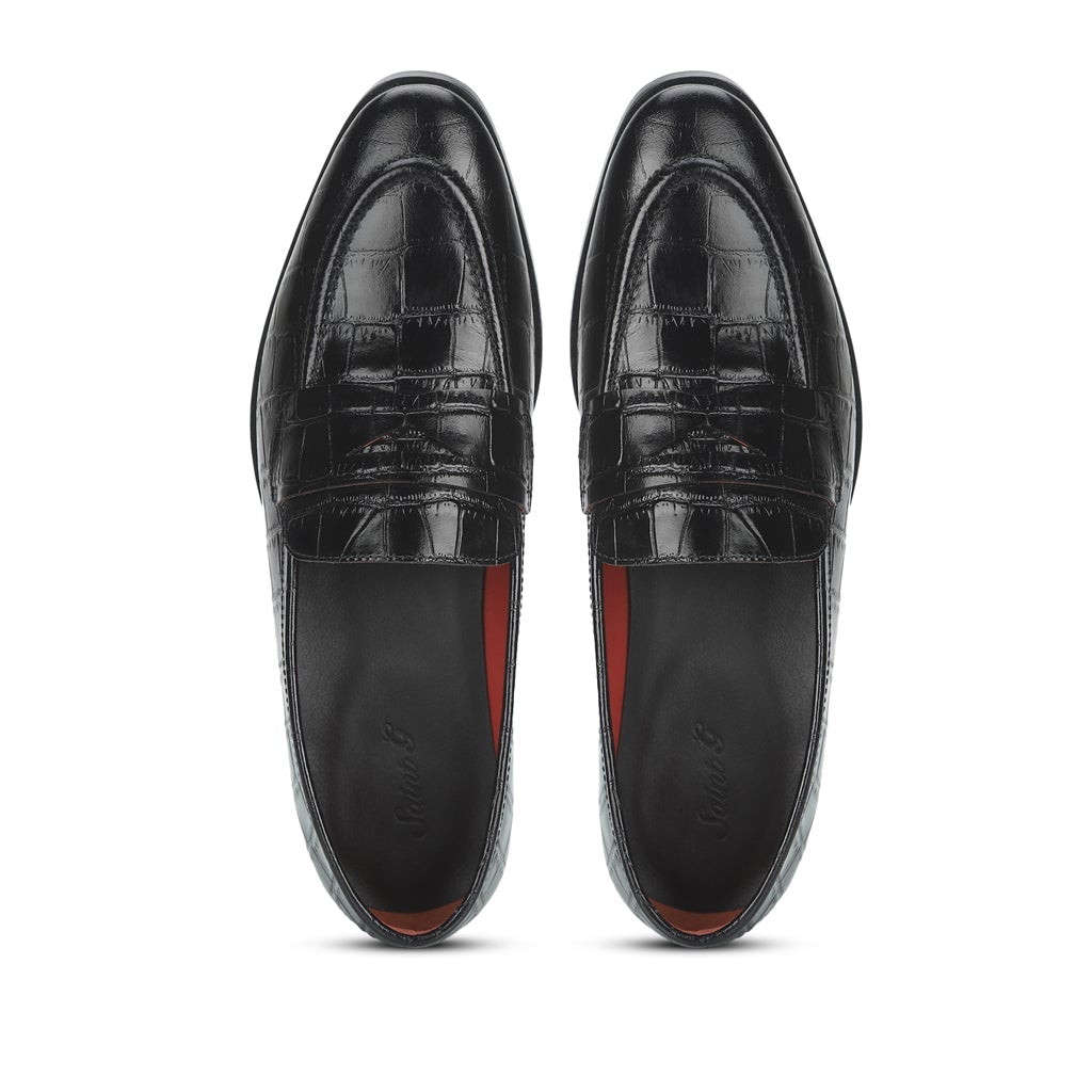 Saint Callisto Black Croco Leather Embossed Moccasin Shoes