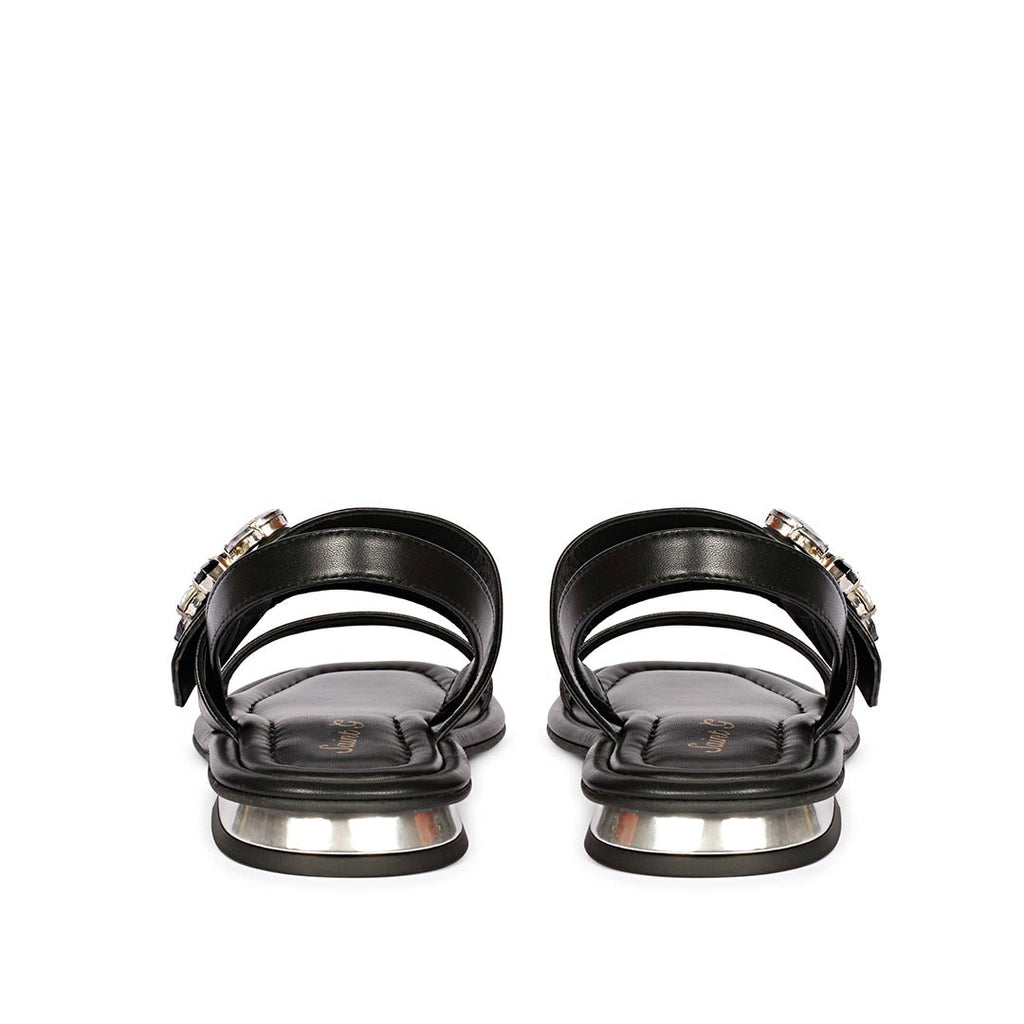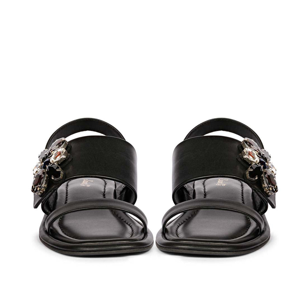 Saint Carona Multi Stone Butterfly Trim Black Leather Sandals