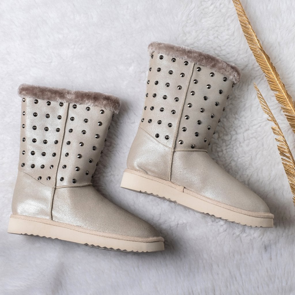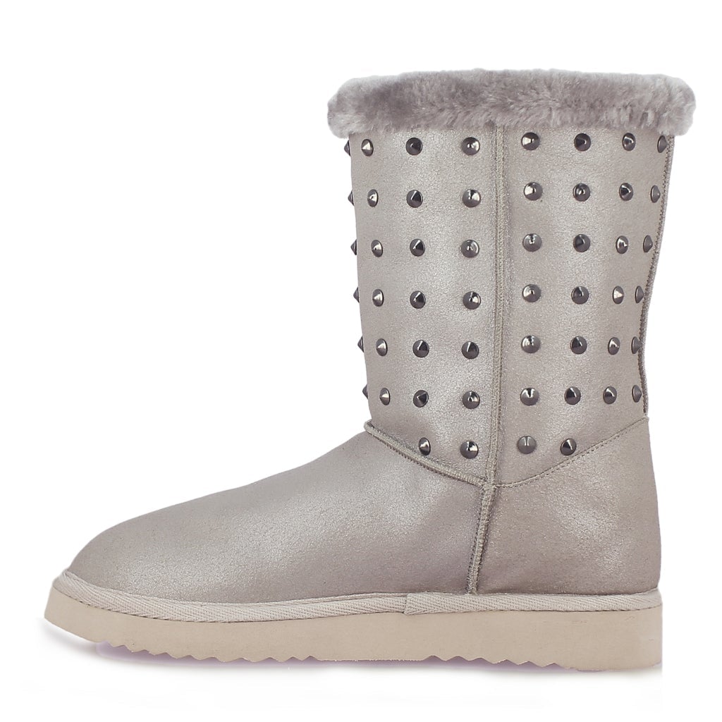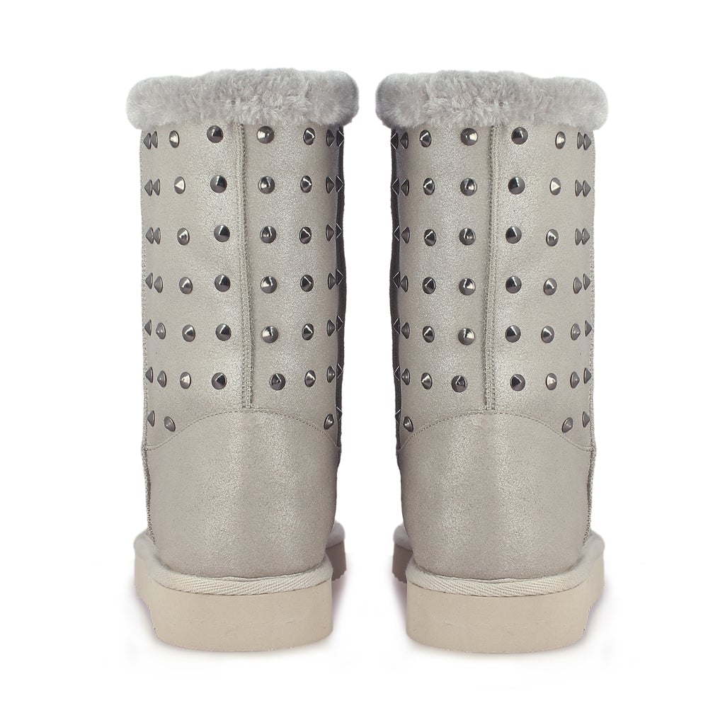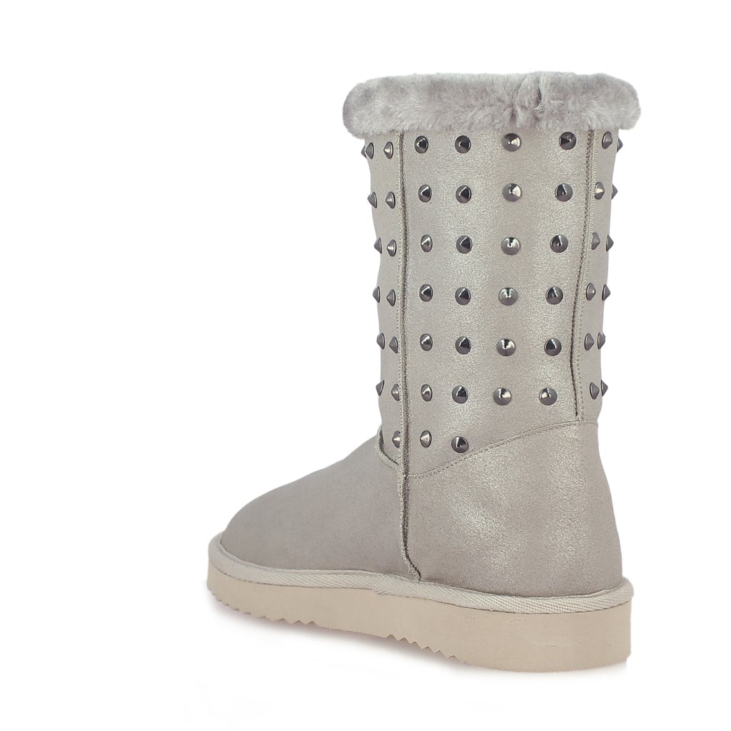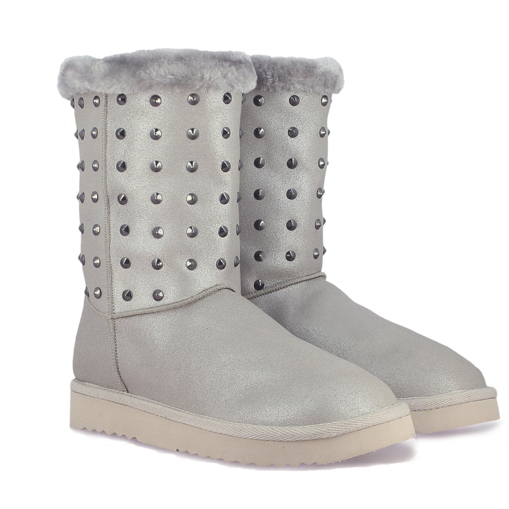 The dazzling, metal studded suede and fur boots will instantly give your winter look a fun party vibe. These snow boots are designed with fur lining and fur insole to keep your feet warm while you have fun. Enjoy your step with super comfortable & flexible rubber sole.