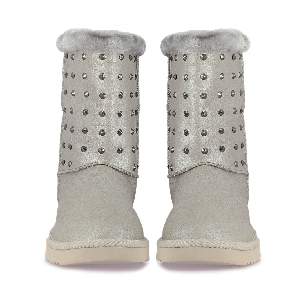 Saint Cassandra Metal Studded Grey Suede Snug Boots
