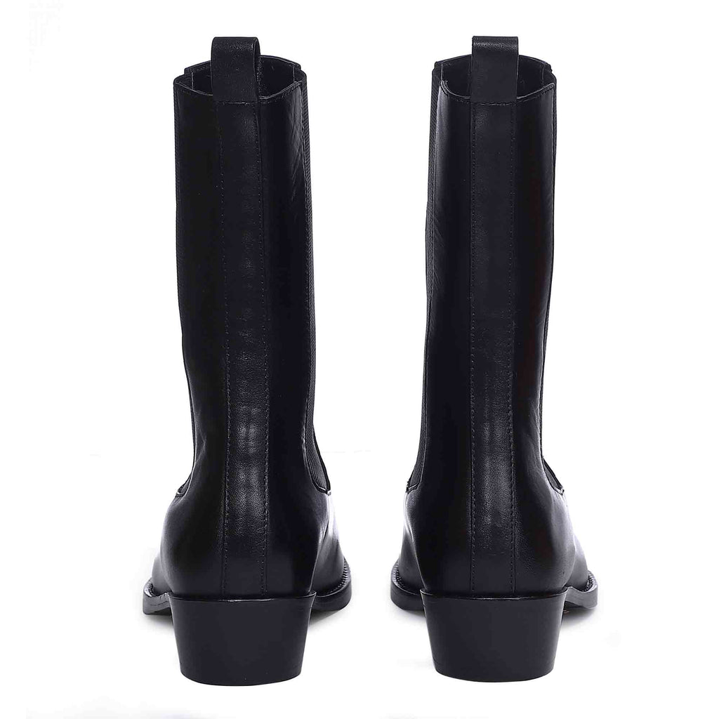 Standout this season with these leather handcrafted pull on calf boots from SaintG. Soft and breathable leather lined for a luxurious feel, padded leather footbed provides lasting comfort. Featuring elasticated back panel for the perfect fit around the calf, the pull on closure to ensure comfortably slip them on and off. These great-looking slip on boots feature a classic western style crafted from genuine leather, The handmade tunit sole guarantees traction irrespective of the surface. The pull up tab completes the design.