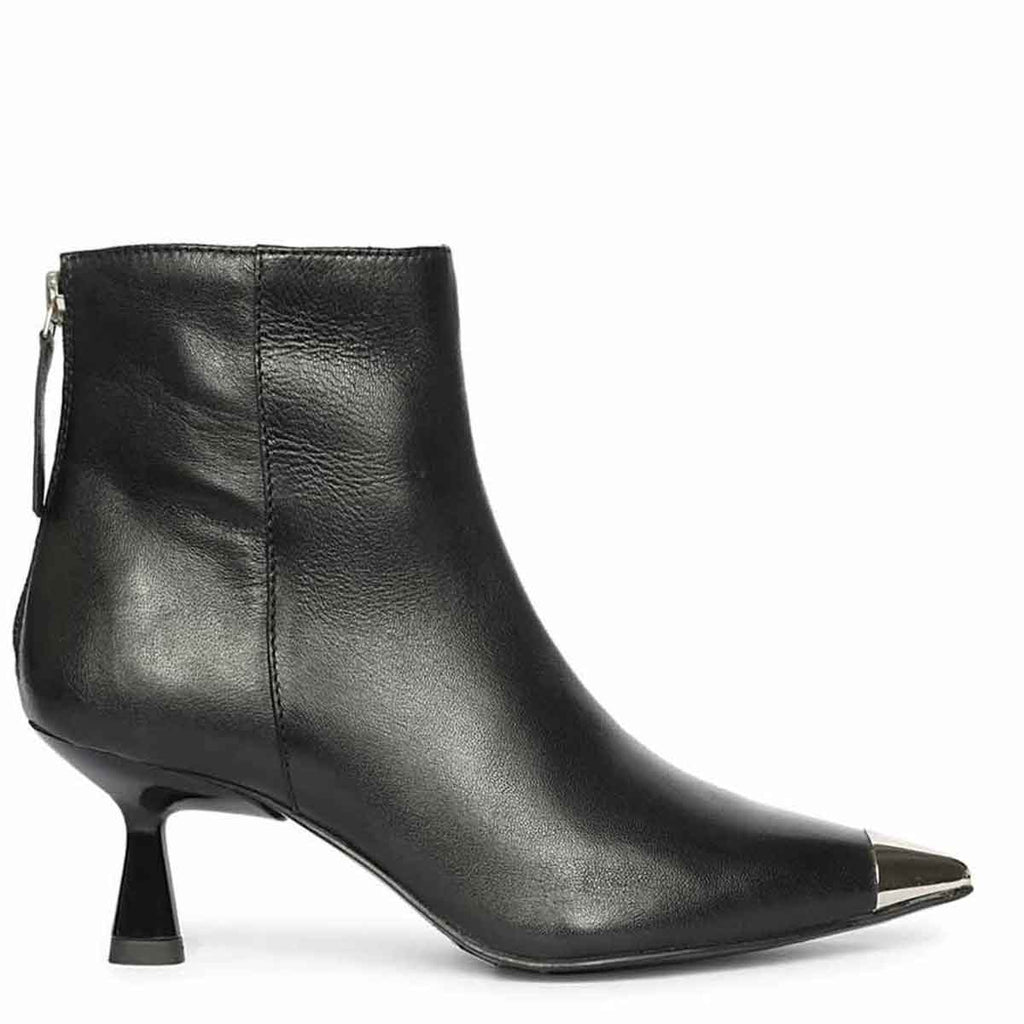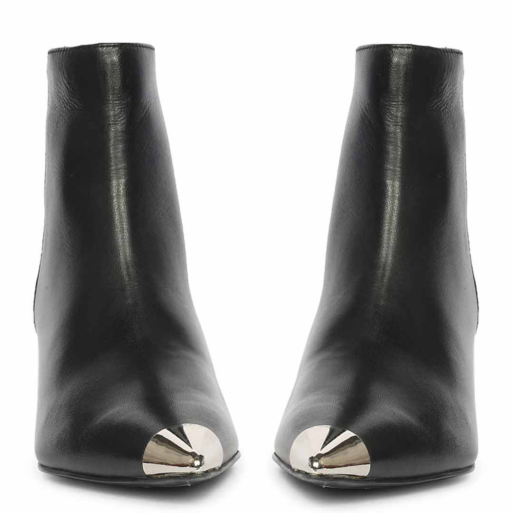 Saint Celvyn Black Leather Pointed Toe Cap Ankle Boots
