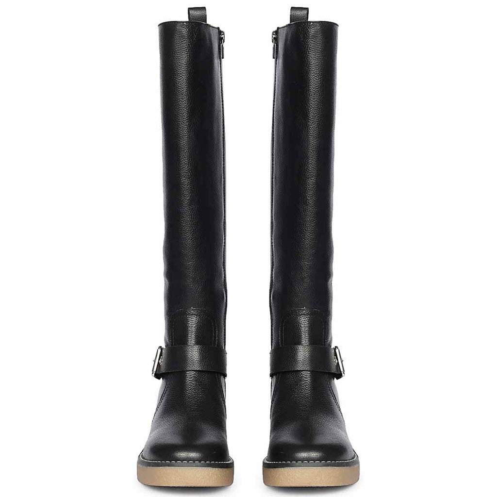Saint Dahlia Silver Buckle Black Leather Long Boots