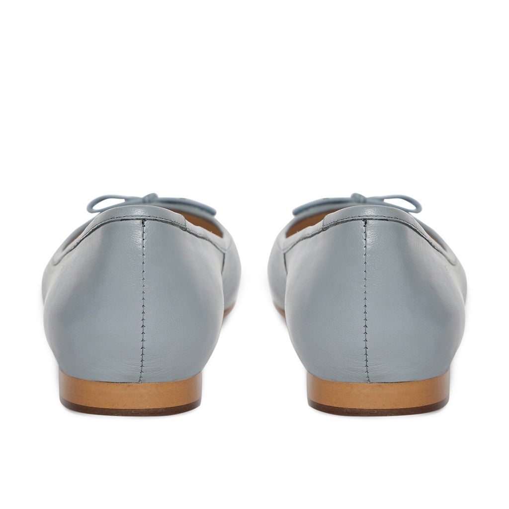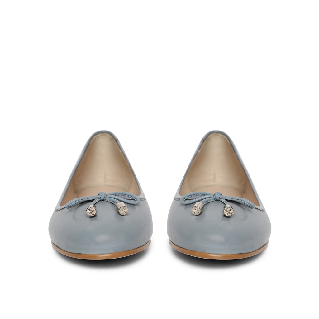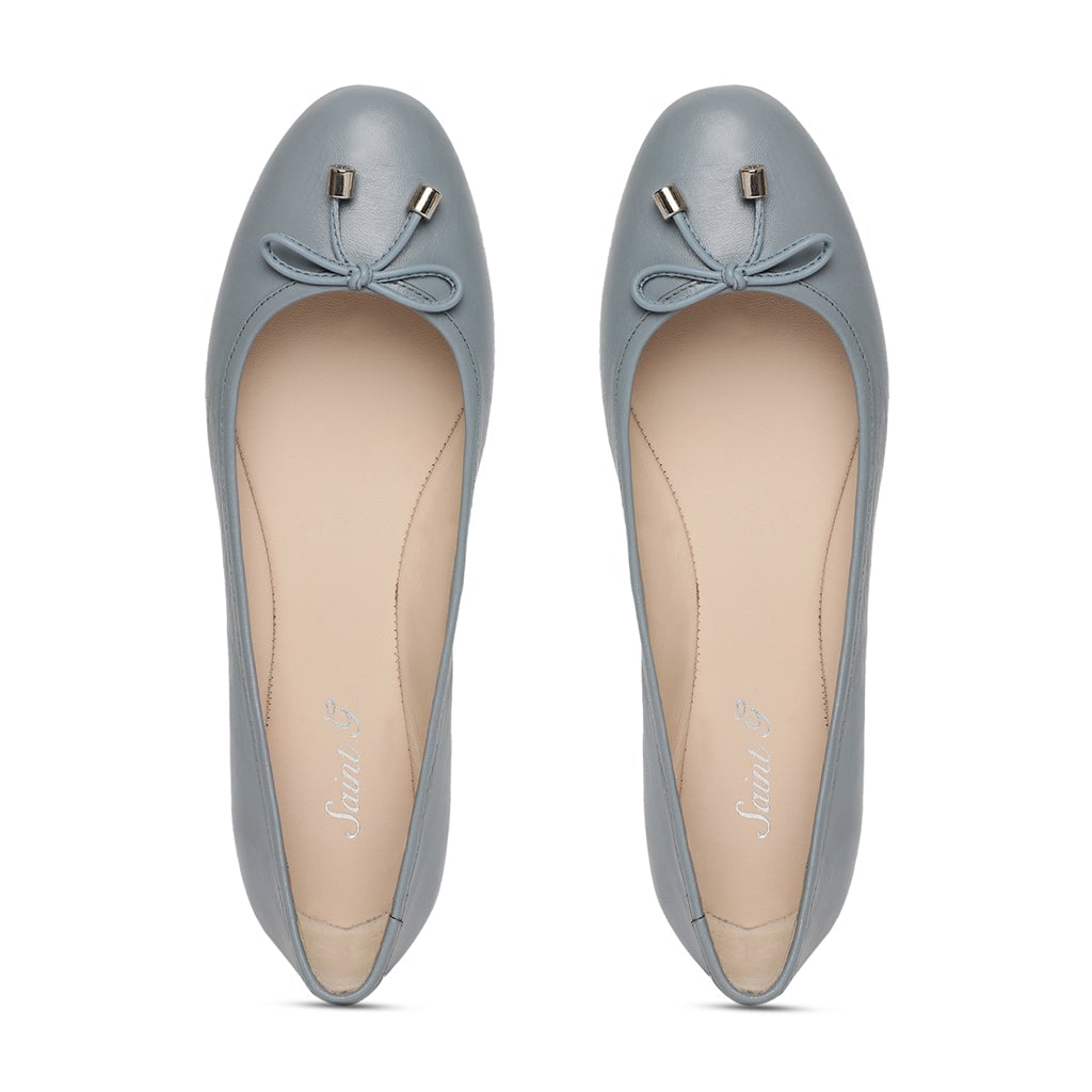 Elevate your everyday style with the blue leather handcrafted ballet flats from SaintG. Complete with nude leather upper, leather lining and sole. This flat features a bow tie with metal ornaments. It's finished in a classic round toe design.