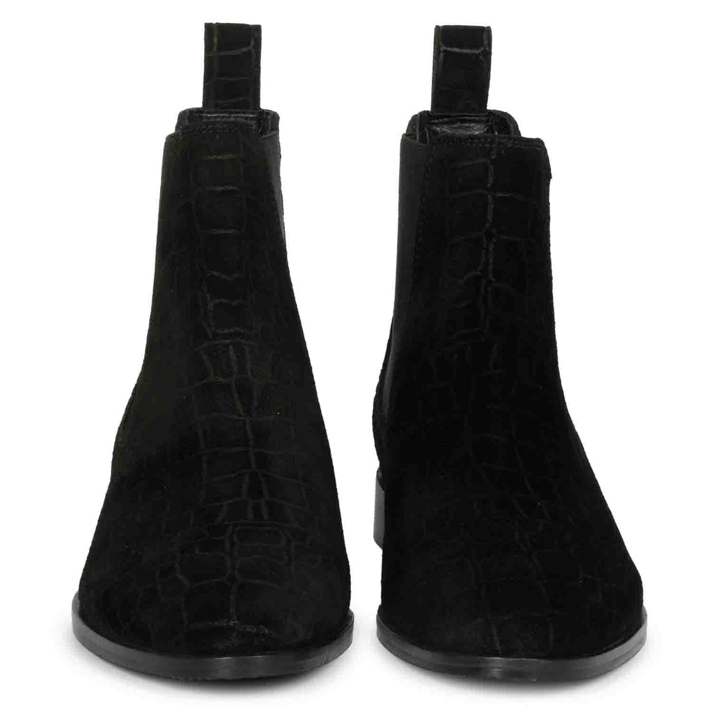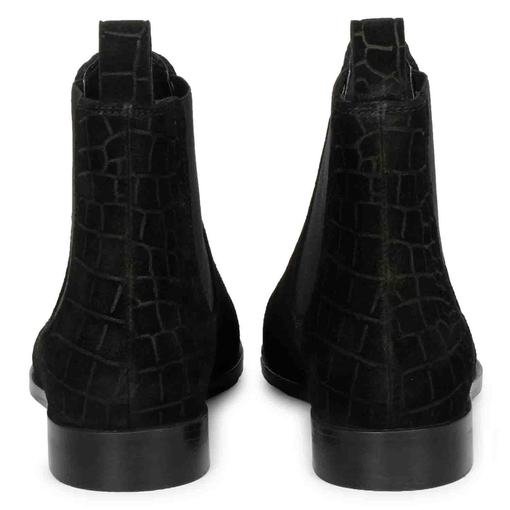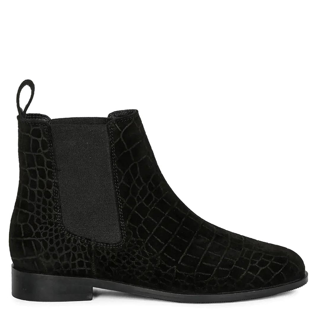 Set the trend this season in these Saint Diane black slip on ankle boots crafted from suede leather, Fitted with elasticated side gores to easily slip on and off. The premium leather upper assures comfort, while the handmade super comfortable & flexible rubber sole guarantees traction irrespective of the surface, fitted with a rounded toe and set on a slightly raised heel. The Elasticated side panel and pull up tab on the back completes the design. It's a versatile investment for special need.