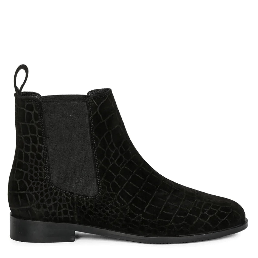 Saint Diane Black Suede Croco Print Leather Ankle Boots