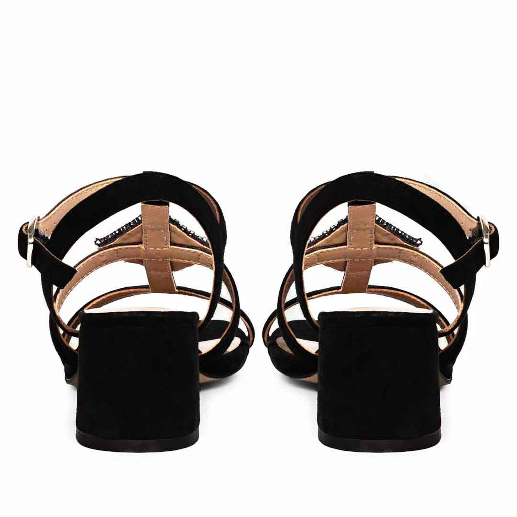 Show off your summer styling with our Radiant Black Suede Leather Block Heels. These black leather heels are embellished with Stones, making them both sophisticated and fun. Perfect for a night out or to add a touch of sparkle to your everyday look.