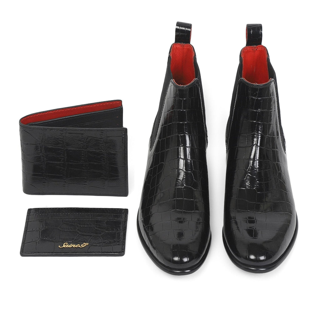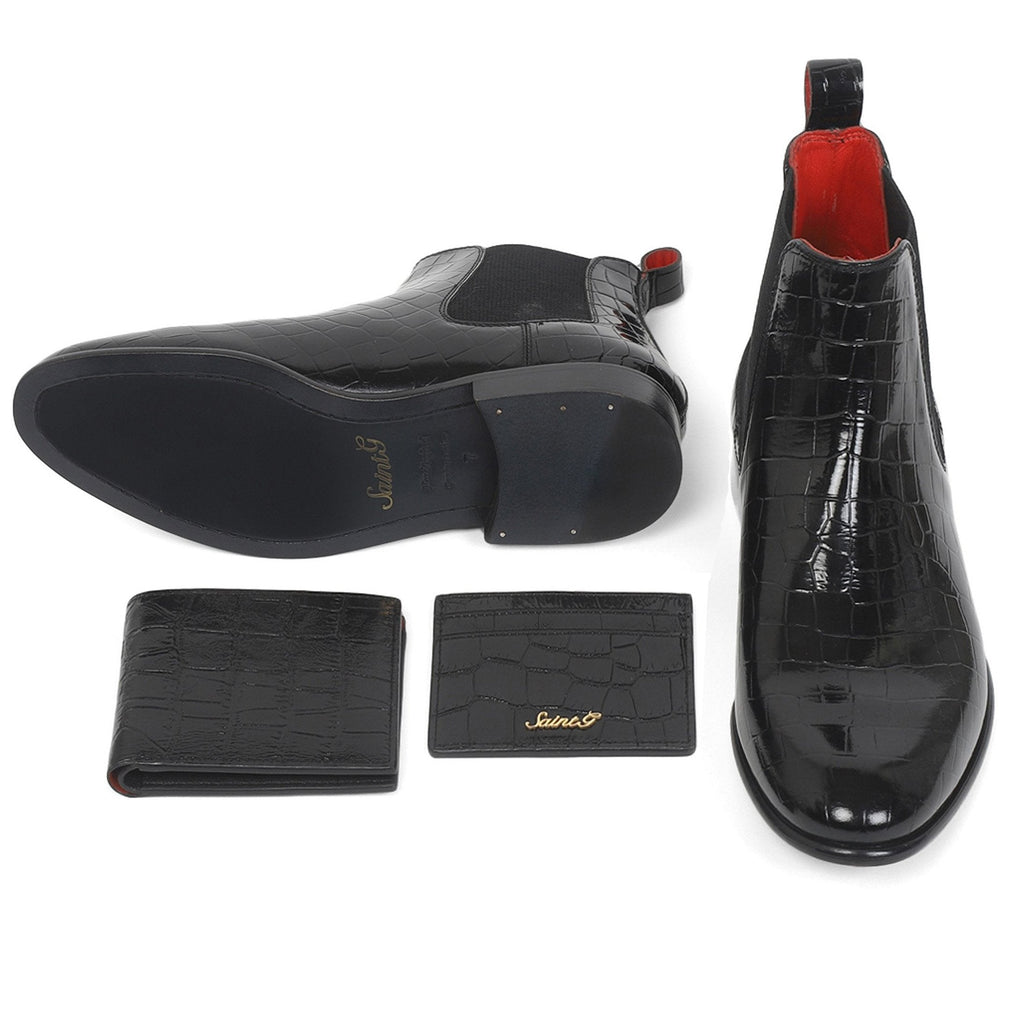 Saint Eadred Black Croco Patent Shiny Leather With Set