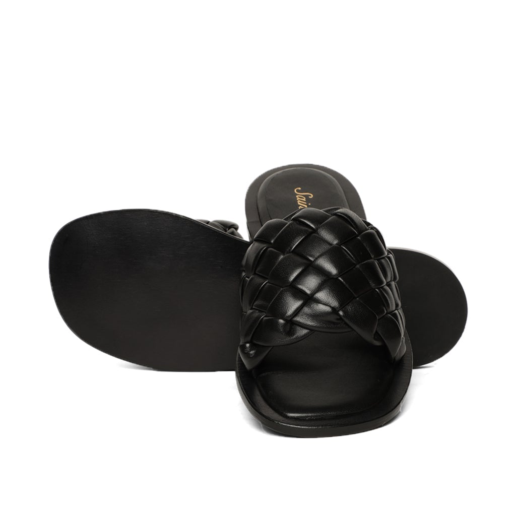 A slip on sandal that just screams simplicity with style. The woven leather upper makes them even more attractive and the leather insole ensures maximum comfort all day long, plus, as a touch of style, they are  beautifully matchy. Indulge yourself and freshen up that pedicure. They will look fantastic whether you choose a mini skirt, long flowing skirt or pants and by the way, don't forget to throw them in your suitcase when you head off on your next holiday.
