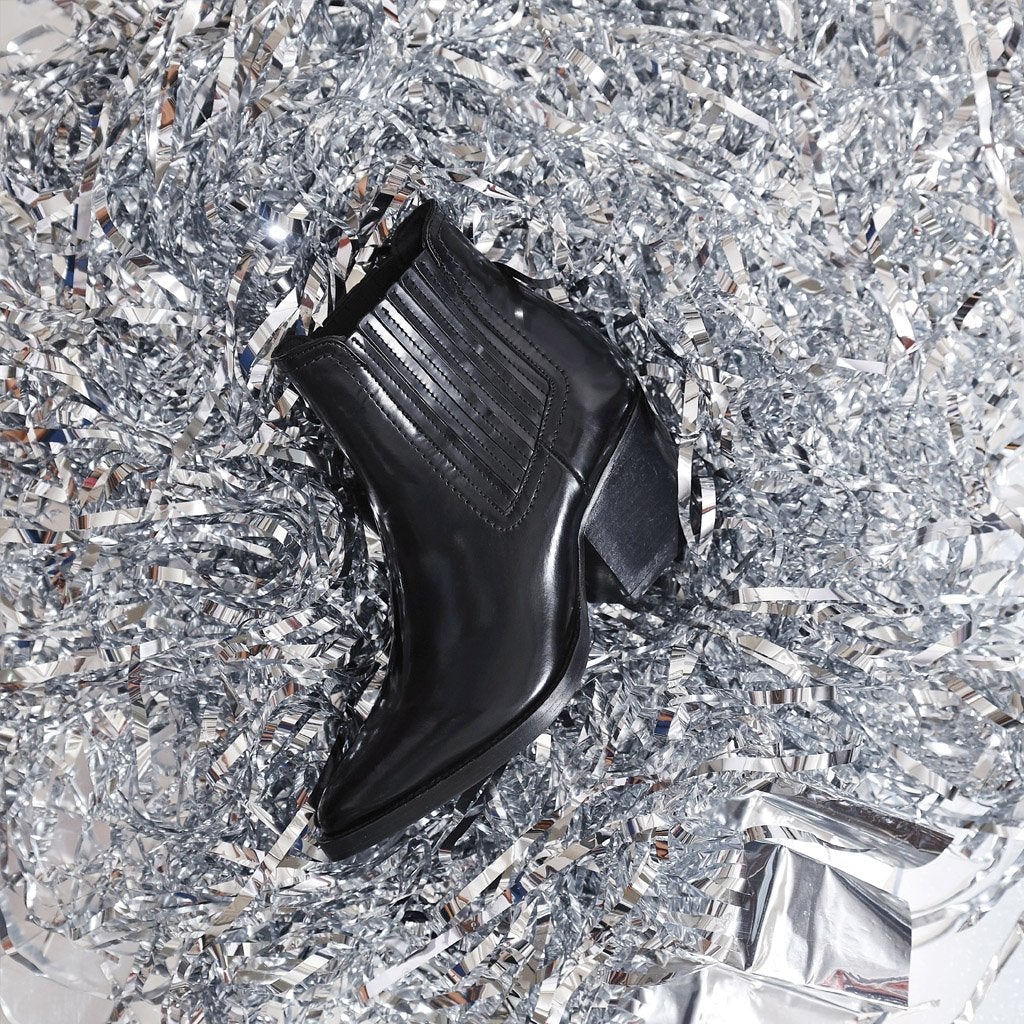 Give yourself more height and style with a chic pair of boots from SAINTG. This black shiny pair can be teamed with slim jeans and an in-season top when your going to a birthday celebration.