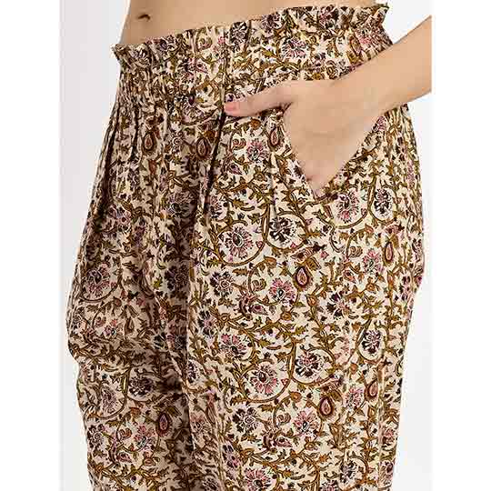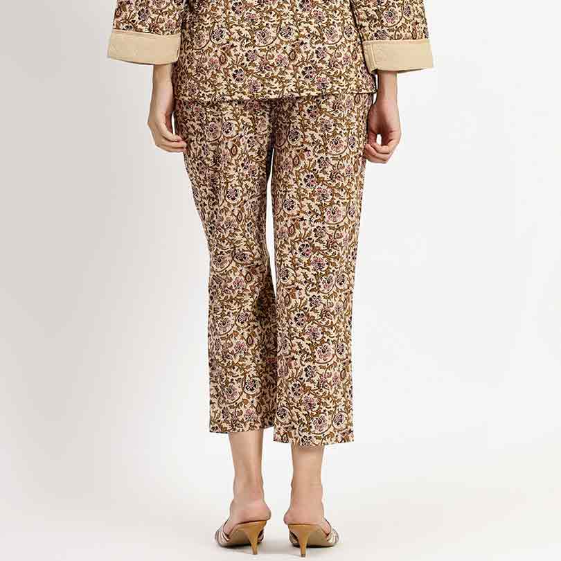 Saint Elouise Womens Beige Printd Small Check Dobby Trouser