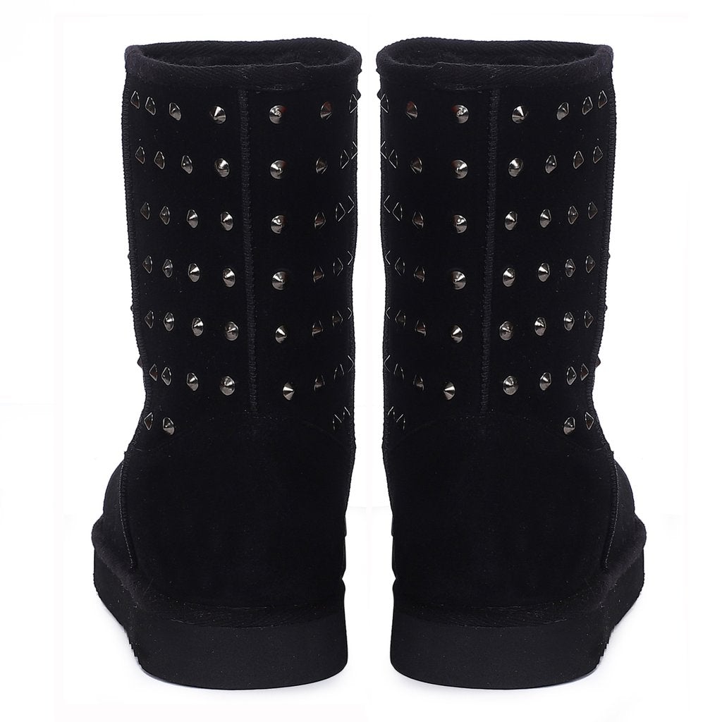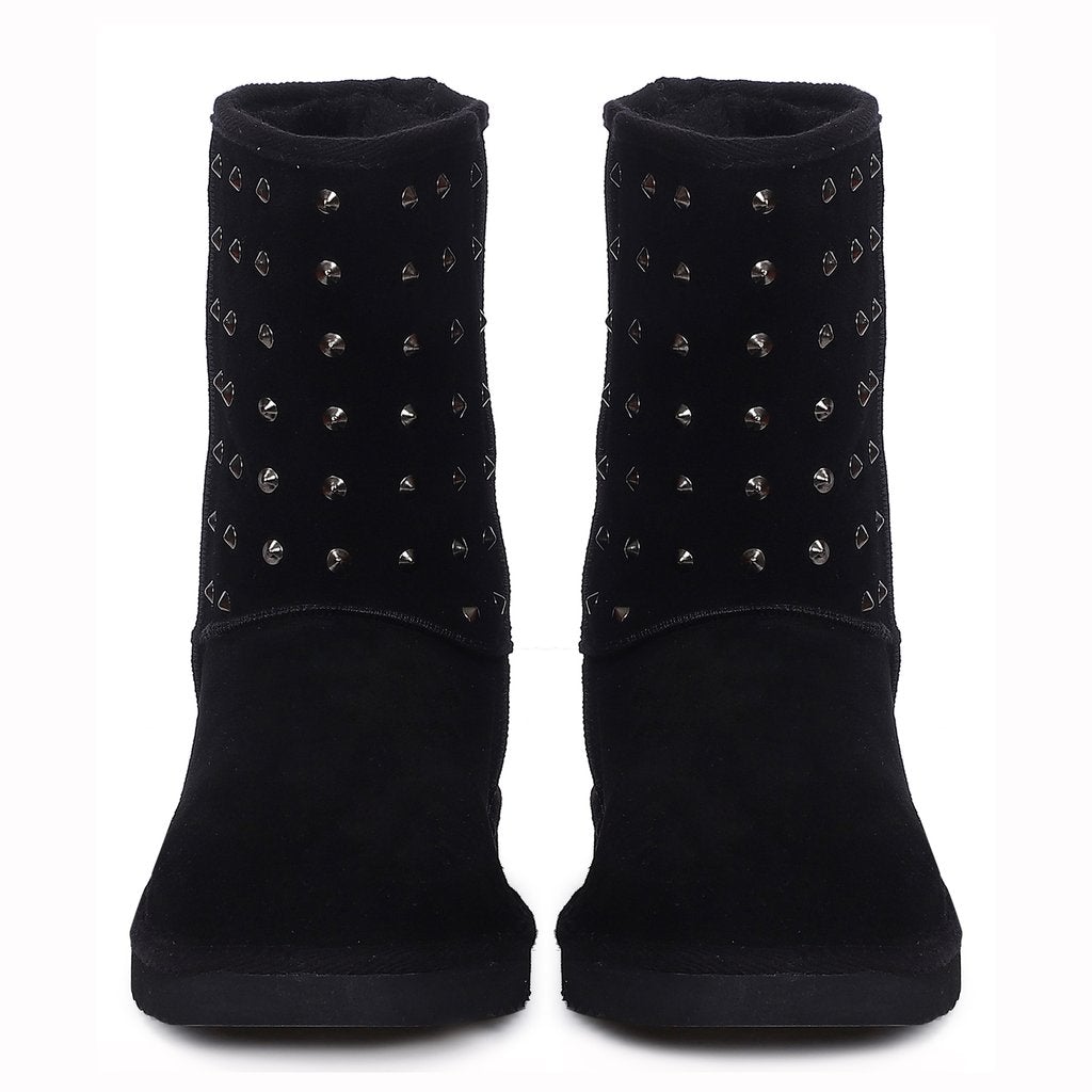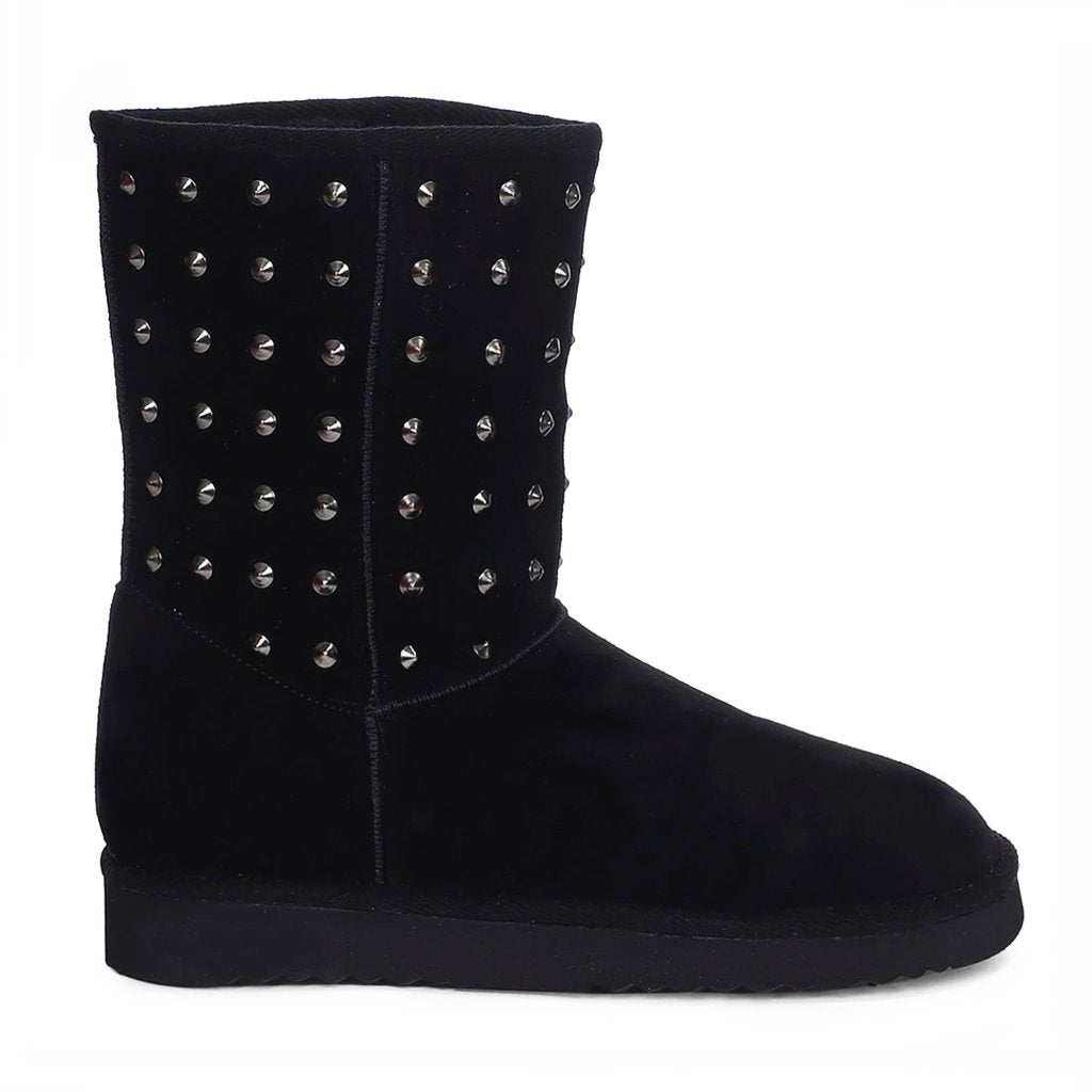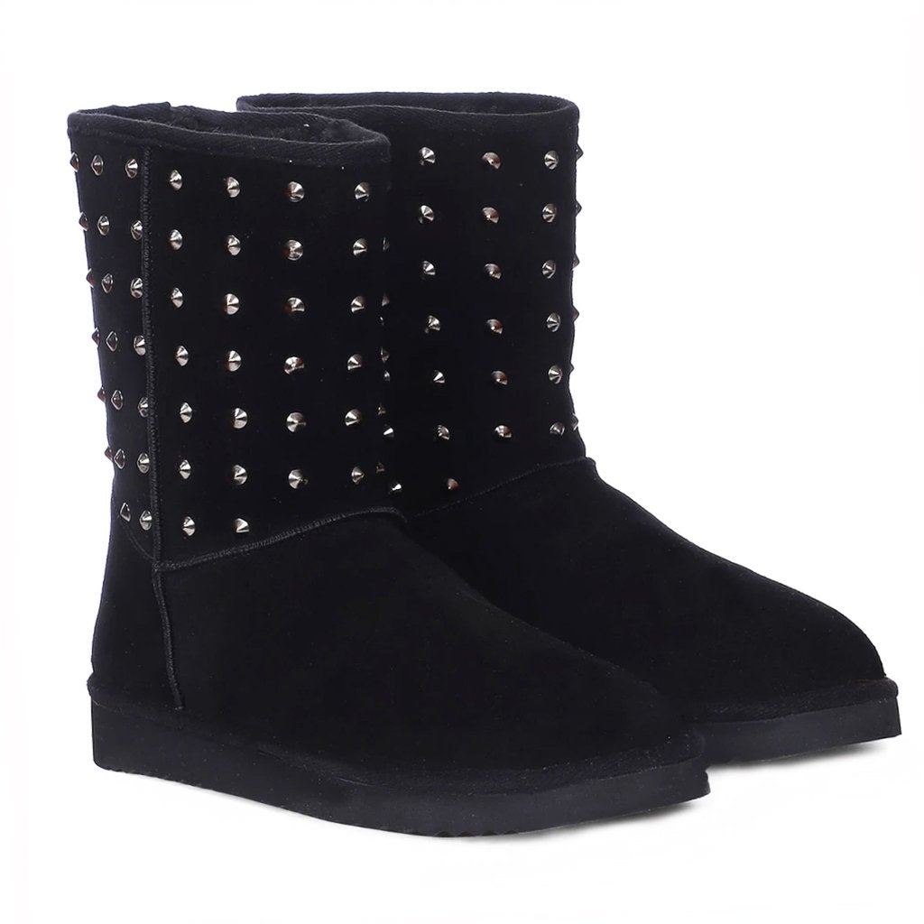 Saint Estrella Metal Studded Black Suede Snug Boots