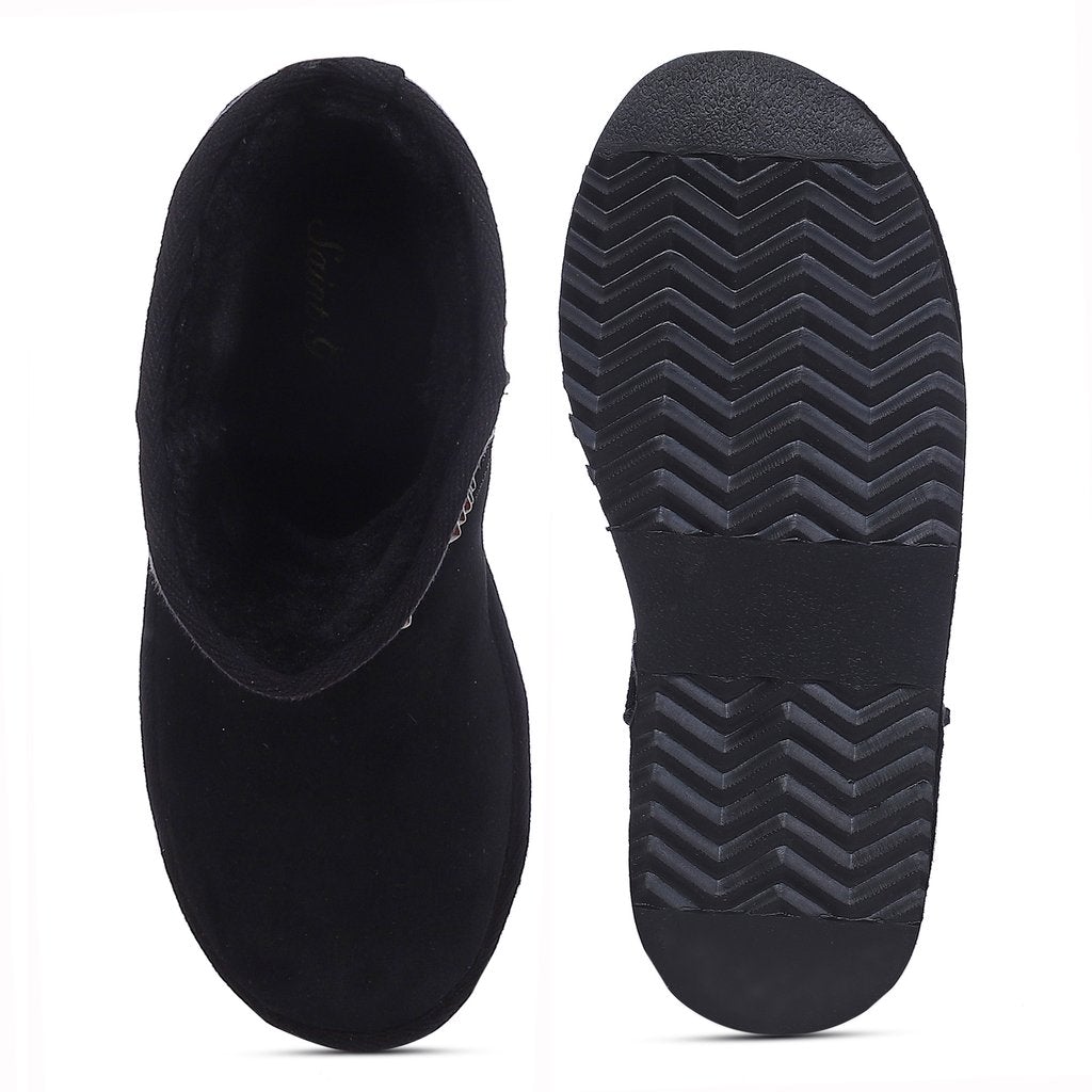 The dazzling, metal studded suede and fur boots will instantly give your winter look a fun party vibe. These snow boots are designed with fur lining and fur insole to keep your feet warm while you have fun. Enjoy your step with super comfortable & flexible rubber sole.