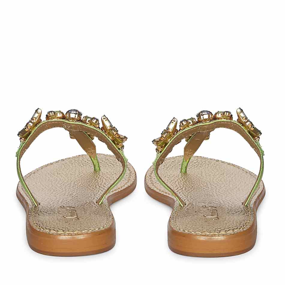 Saint Fleur Multi Stone Metallic Green Leather Flats