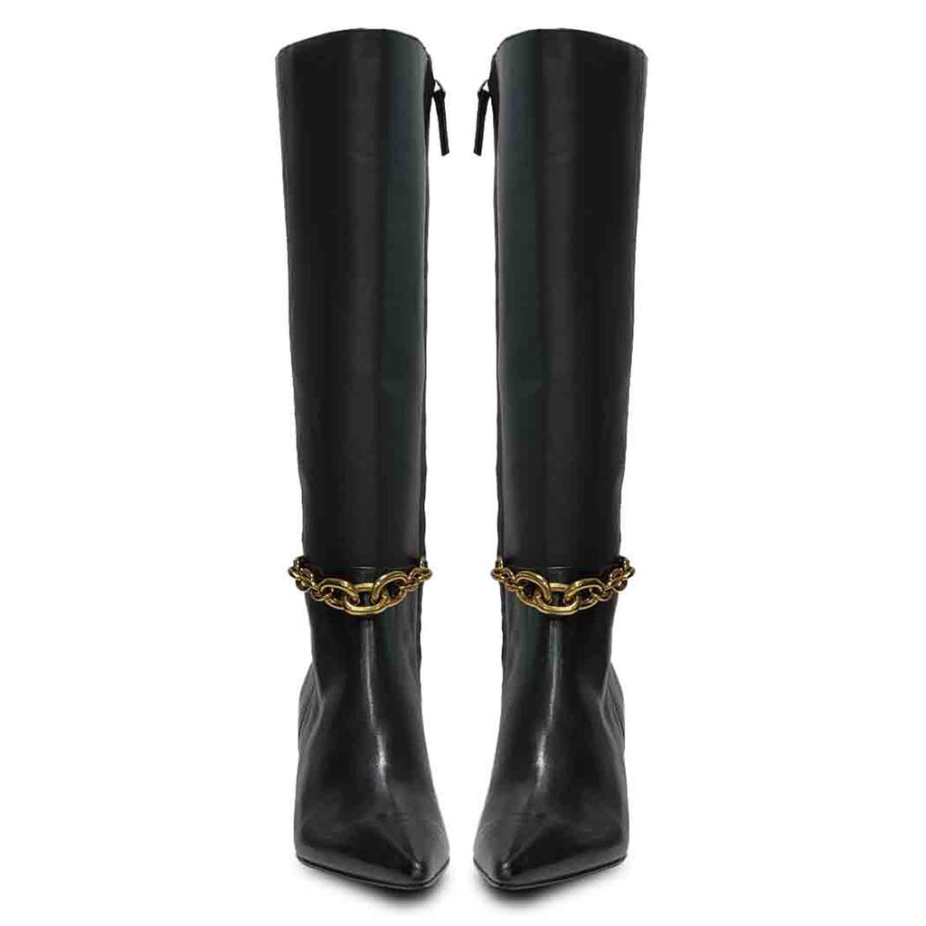 Saint Freya Chain Embellished Black Leather Long Boots