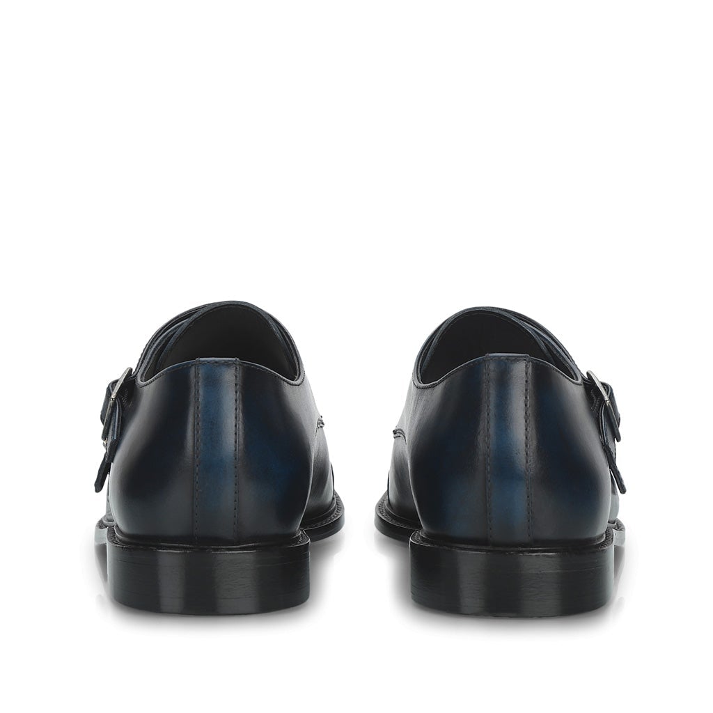 Saint Perctarit Blue Leather Double Buckle Monk Brogue Shoes